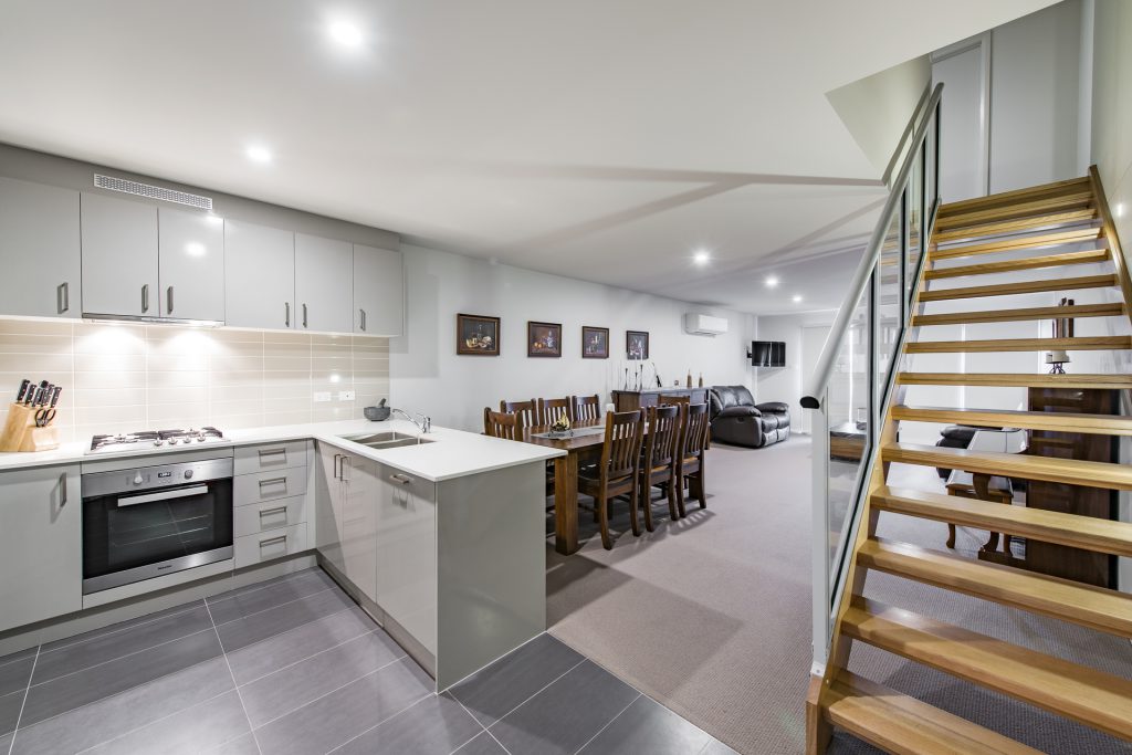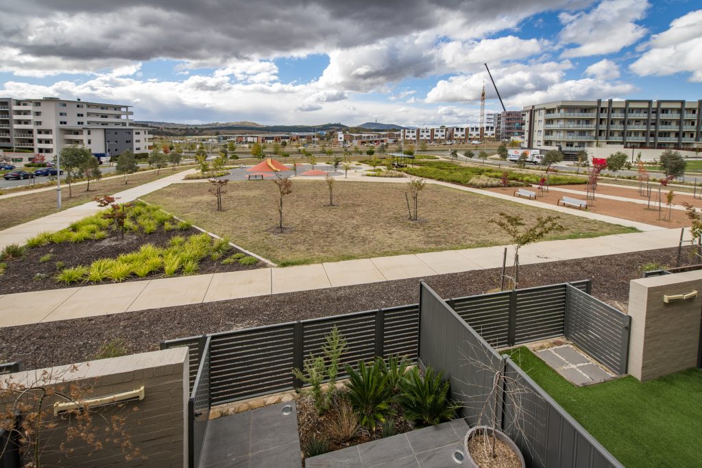 A sophisticated easy-care lifestyle awaits the fortunate new owner of this striking 3 bedroom residence beautifully positioned in the heart of Canberra’s newest and most dynamic residential precinct with sweeping views overlooking parkland to Black Mountain beyond. With its superior size, inclusions and position, No 31 is arguably the best property in the “Garden Terraces” complex and is set on three levels featuring a harmonious blend of both indoor and alfresco living spaces resulting in a true haven for relaxed casual or formal entertaining. Highlights of the property include fully appointed gourmet kitchen overlooking the open-plan lounge/dining on the lower level leading out to an exquisite paved courtyard taking maximum advantage of the ideal N/E aspect. The middle level offers a large 2nd family living space dividing bedrooms two and three while the massive segregated main bedroom with its walk-in wardrobe and ensuite bathroom occupies the entire upper level. Year-round absolute comfort is assured by no less than five split-system R/C air-conditioners. A convenient 3rd WC and separate laundry located on the lower level along with a detached double garage with automatic remote controlled roller door are further features which set this property well and truly apart from other offerings.