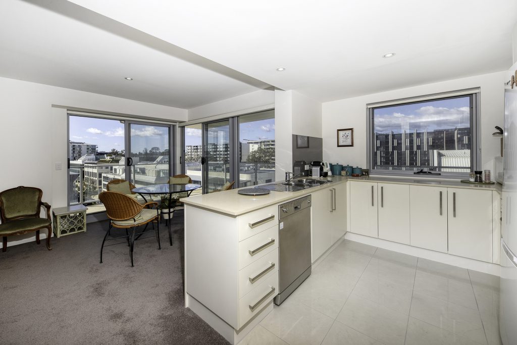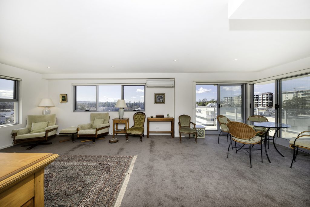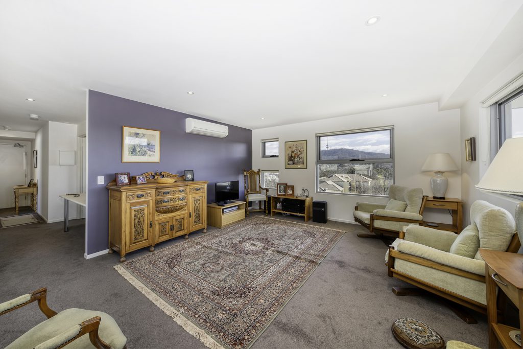 This sixth-floor apartment is superbly located in the sought after and tightly held ‘Five’ complex. Imagine living in this executive sun-drenched apartment while enjoying the panoramic views of Black Mountain Mount Ainslie and beyond from all livings areas.