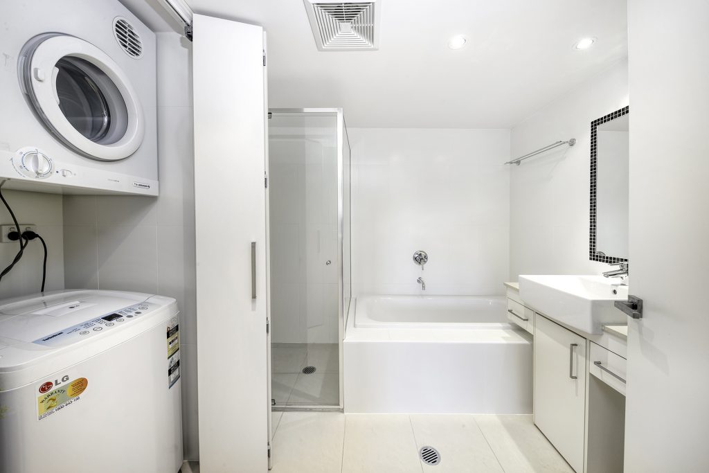 – Floor to ceiling tiles in both bathrooms plus custom joinery and feature glass tiles