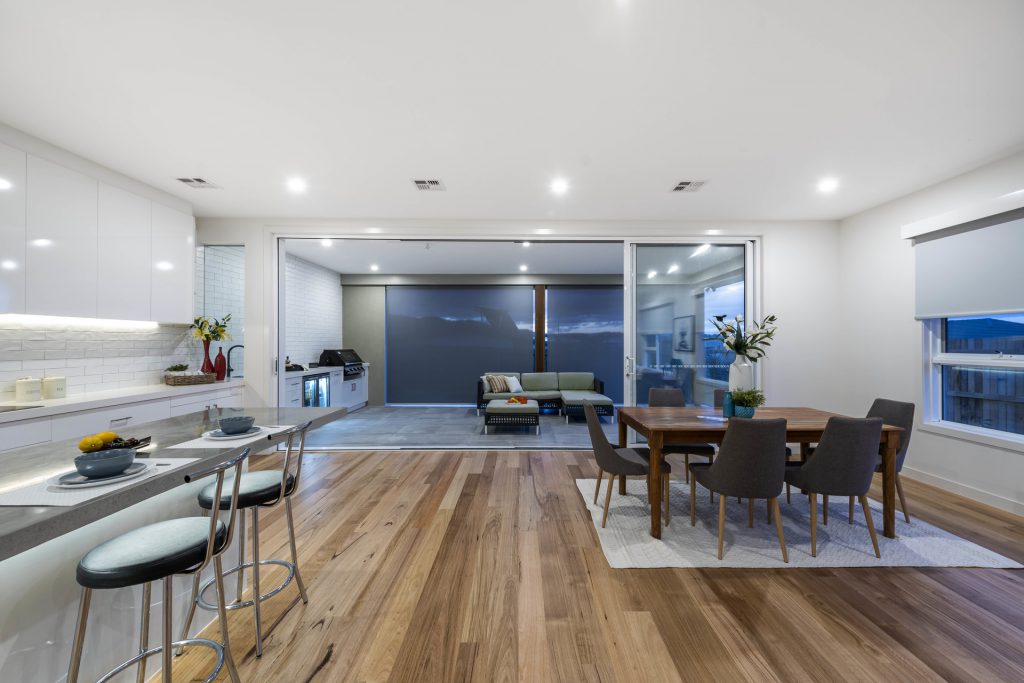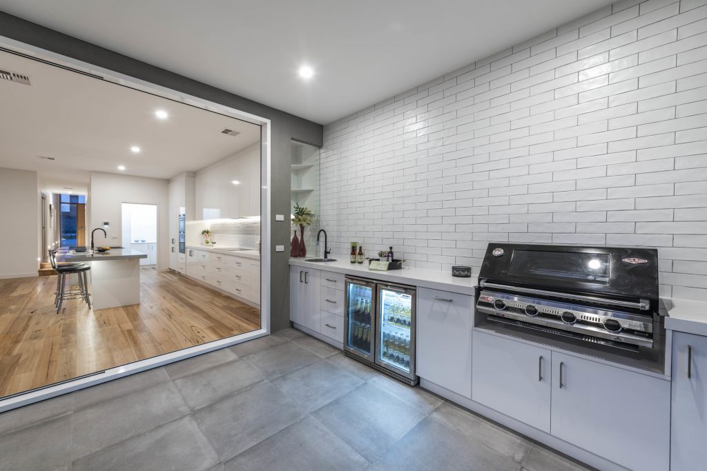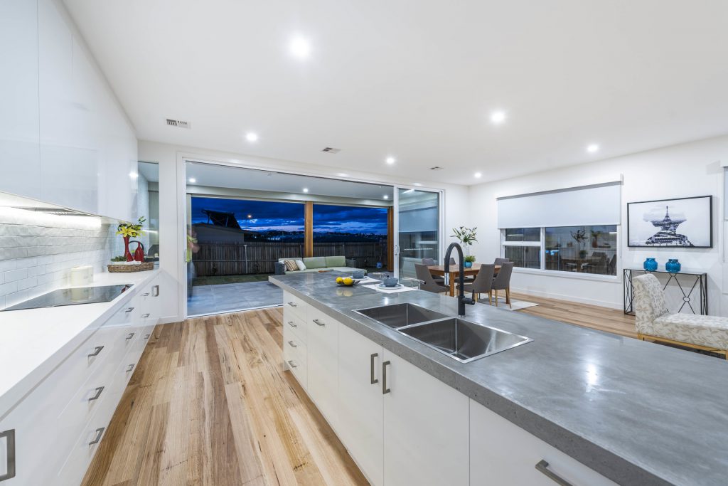 The home showcases a myriad of design triumphs, including a superbly appointed kitchen with polished concrete benchtop, walk-in pantry and quality appliances. Capitalising on the magnificent open plan and expansive sliding doors, the outdoor kitchen merges seamlessly and is perfectly geared for dinner parties, BBQ’s and year round entertaining.
