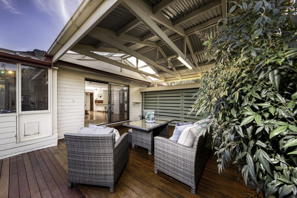 – Rear undercover deck is a terrific space for alfresco entertaining and overlooks colourful landscaped gardens with no lawns to mow