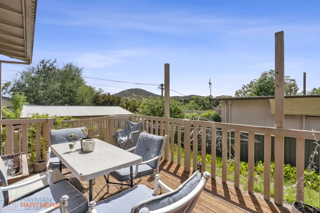 To the rear of the home is an elevated deck with views to Mount Ainslie along with a level backyard that has plenty of room for kids and pets to play. A double metal garage provides additional storage or workshop space.