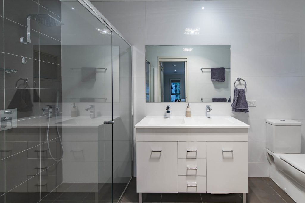 – Dual shower heads with additional handheld shower head