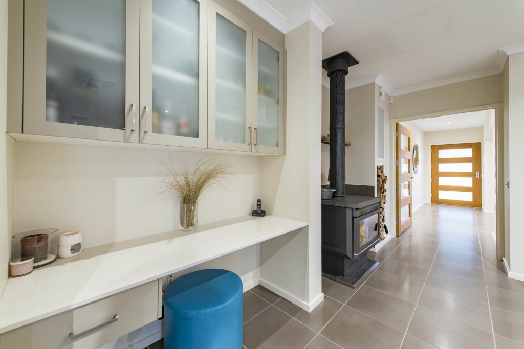 – Built-in study nook and storage cabinets in central living area