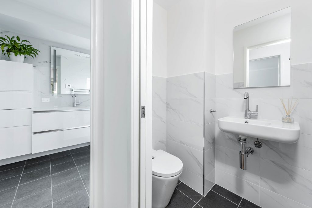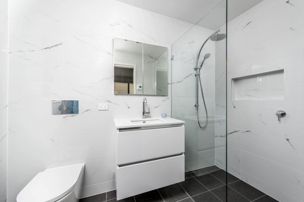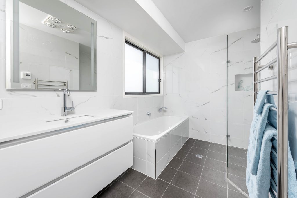 – Floor-to-ceiling tiling in bathrooms