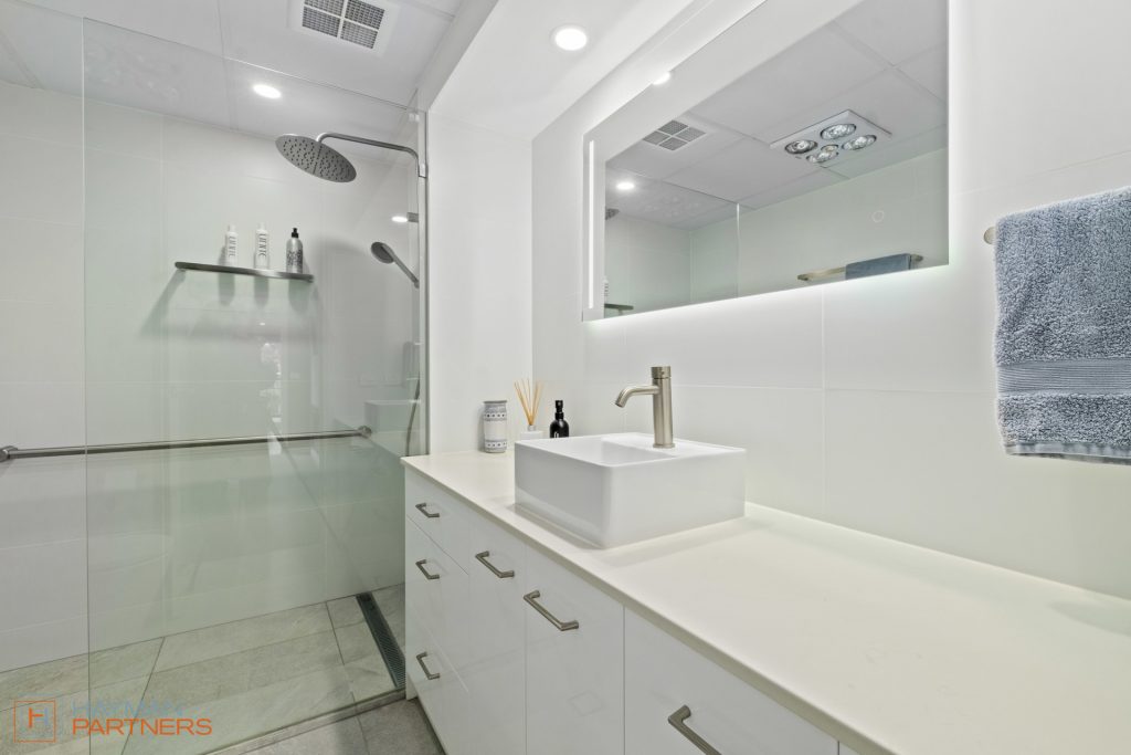Each of the two spacious bedrooms comes with built-in robes and private renovated ensuites, providing privacy and comfort. There’s also a separate powder room for guests and a fully fitted laundry with storage, dryer/washing space, vanity, toilet & heat pump water system relocated to the Verandah.