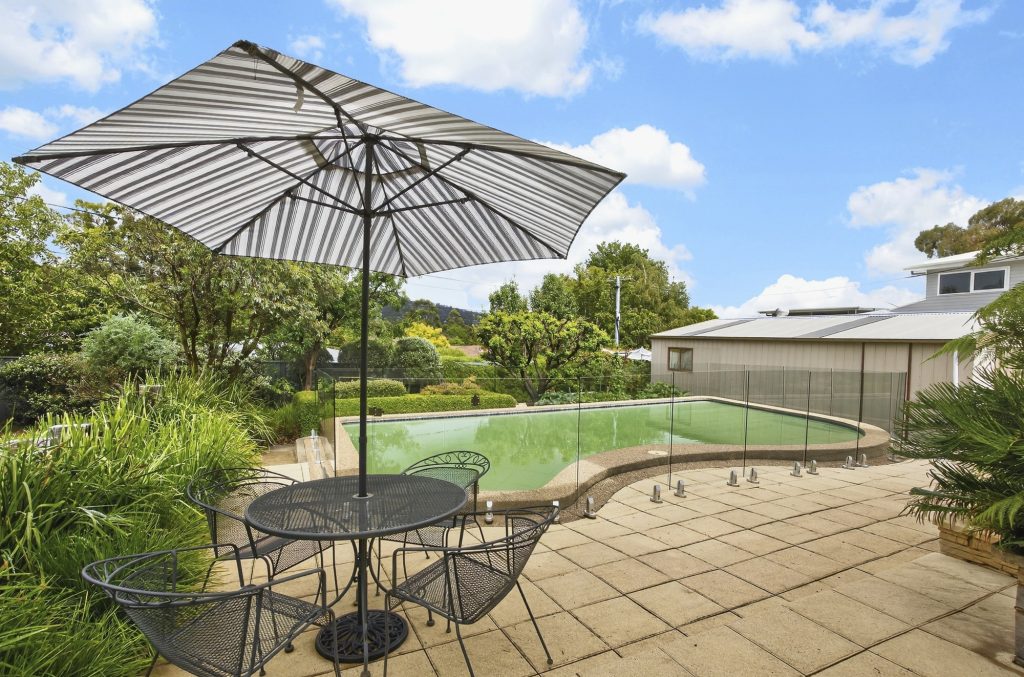 Outdoors, the property truly shines. Established gardens, vegetable plots, and private entertaining areas create a serene setting for year-round enjoyment. The sparkling in-ground pool is perfect for summer gatherings, while expansive garaging for four vehicles plus an additional carport provides exceptional storage and flexibility for trades, hobbyists, or large families.