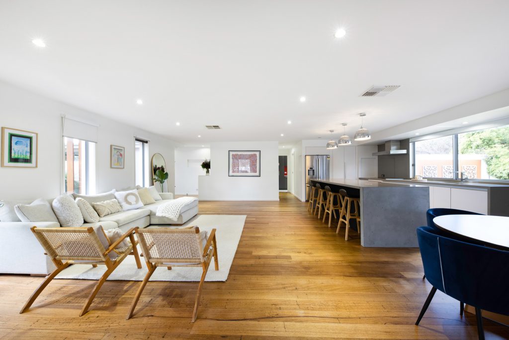 Set on a 872sqm parcel of land this fully renovated North facing home boasts a leafy outlook from every window. On entering the home, you are immediately drawn to the open space, flow and immense natural light the property has to offer. The spacious living areas provide for relaxed entertaining for all occasions and connects seamlessly to the open plan kitchen and family meals area with feature hardwood floors which transition through sliding doors to the rear outdoor kitchen and alfresco area that overlooks the designer landscaped gardens.