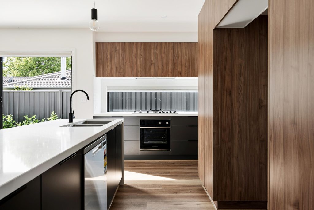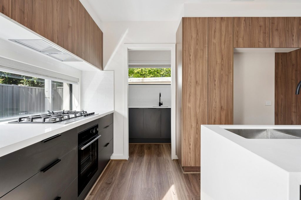 Warm timber flooring guides you through the home to the beautifully appointed kitchen, where stone benchtops, quality finishes, and an oversized walk-in pantry create a refined yet highly functional culinary space perfect for the home chef.