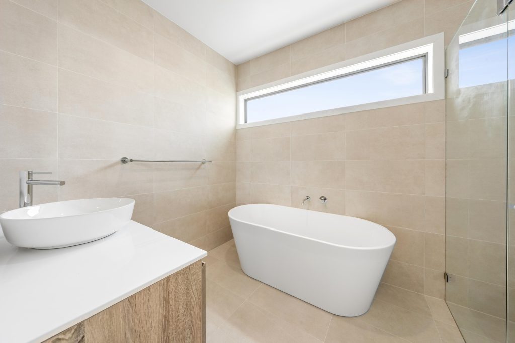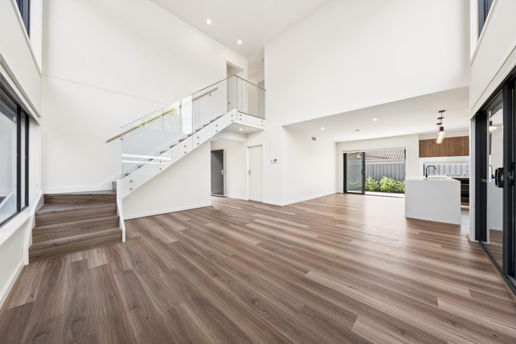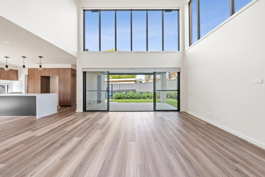 Architecturally designed to maximise light and comfort, the home’s high ceilings and expansive glazing not only enhance its aesthetic appeal but also contribute to year-round energy efficiency through double-glazed windows and ducted reverse-cycle heating and cooling.