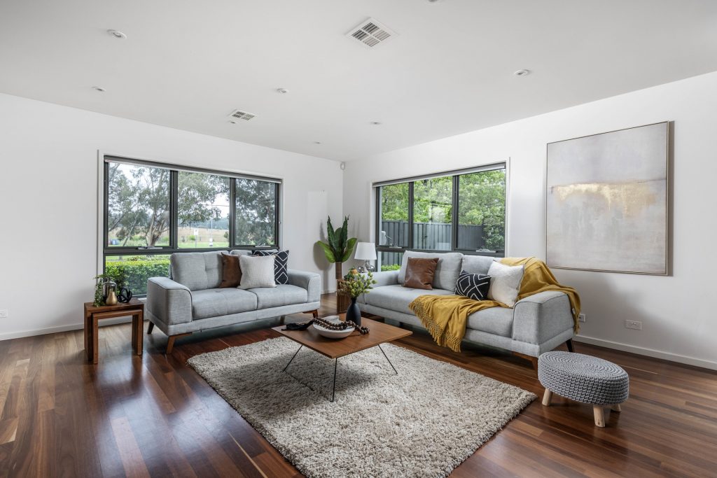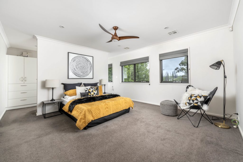 – Large master bedroom with walk-in robe, ensuite and scenic views across North Curtin Oval