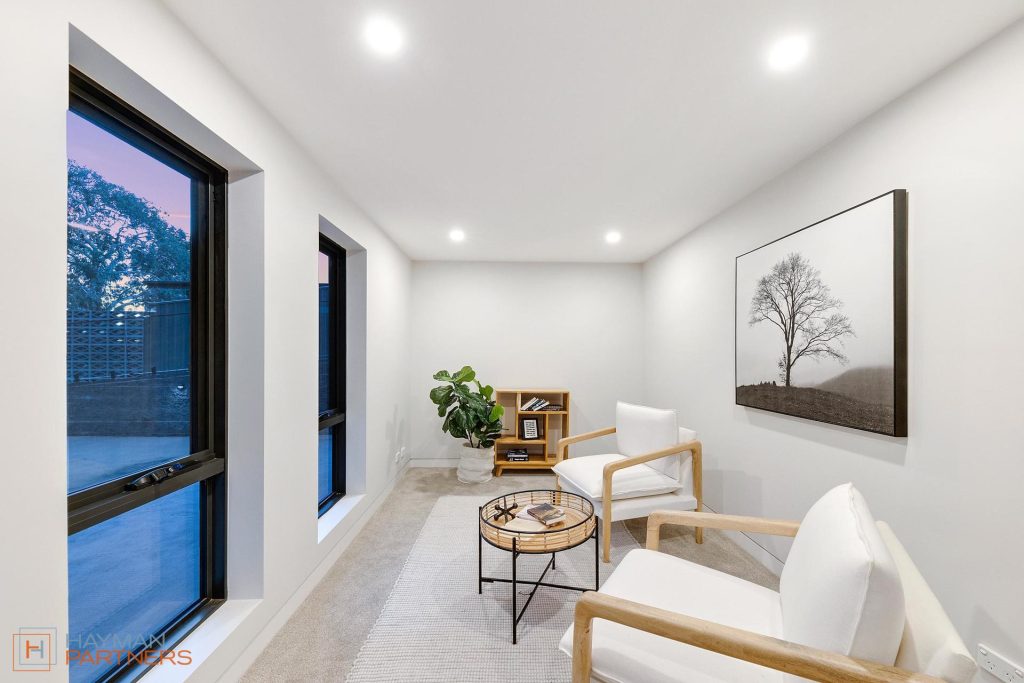 Extensive use of double glazed windows captures beautiful northerly sun which reflects off the high ceilings, creating a light-filled arena for day-to-day living. The sun-drenched front terrace provides the perfect setting for sitting with a contemplative morning coffee or relaxing with the favourite book while the rear deck overlooks a level lawn that’s just waiting for a keen gardener to make their mark.