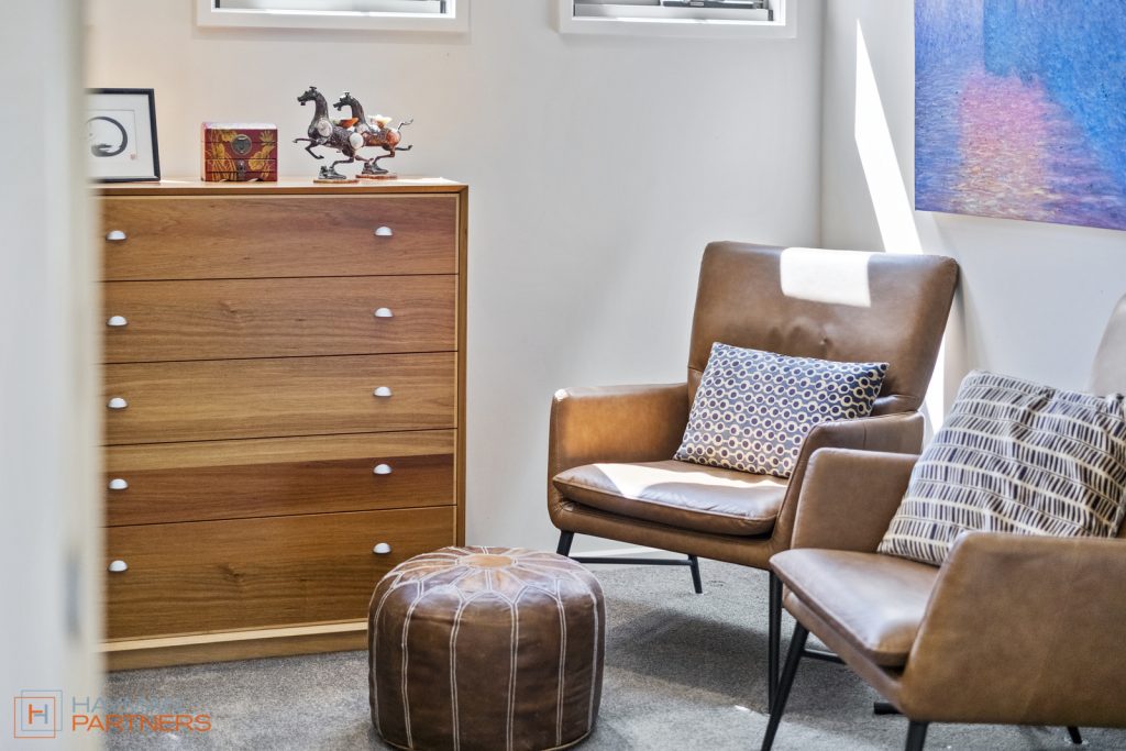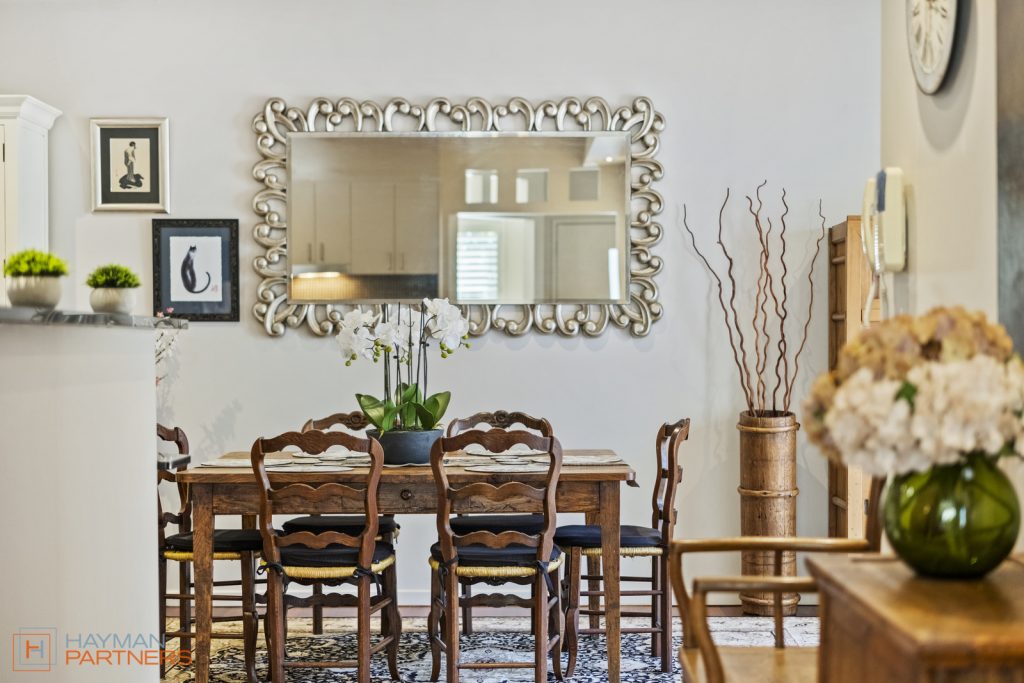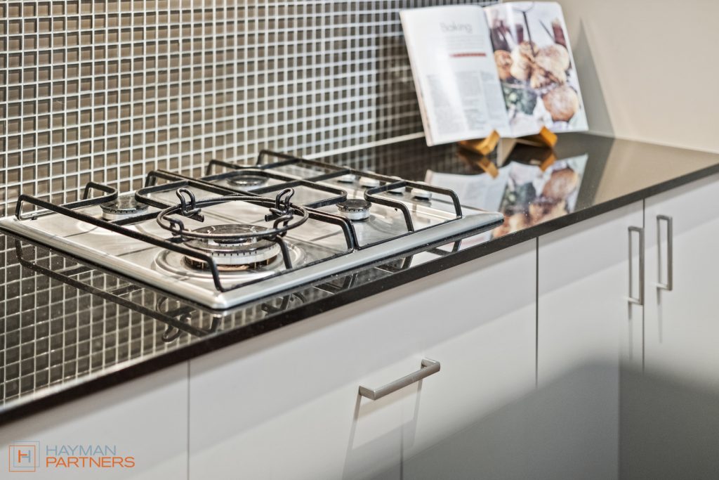 – Light-filled living area flowing into an open-plan kitchen/meals space
