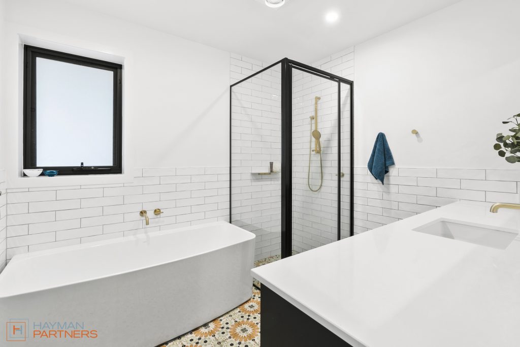– The main bathroom includes another shower, large bath tub, and underfloor heating