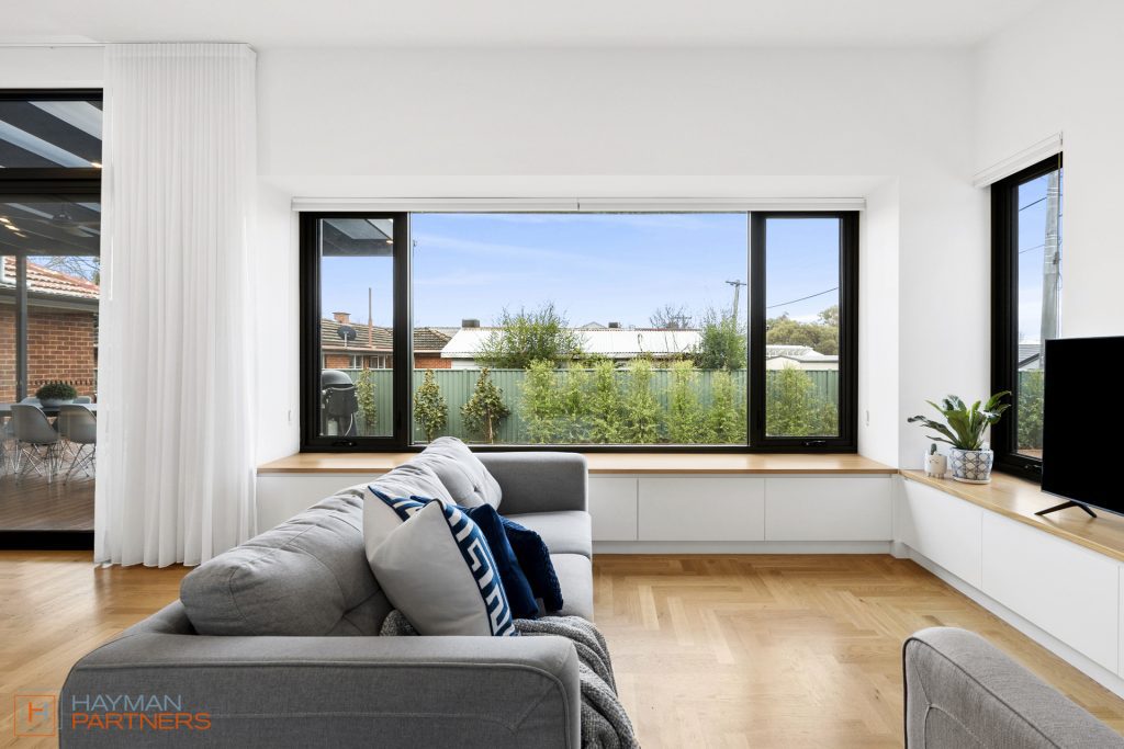 – Quintessential Canberra red brick charm with an extension that sits discreetly behind the existing house, utilising the northern orientation and maximising usable yard space