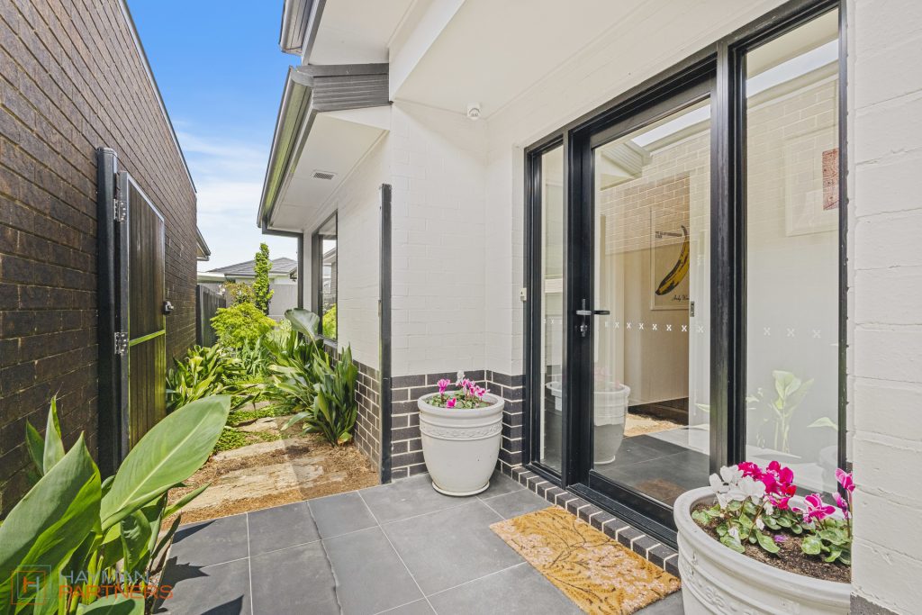 Step outside through the covered outdoor entertaining area and enjoy the established gardens, a true highlight of the property. The manicured backyard lawn and lush greenery provide a picturesque backdrop, visible from nearly every angle of the living and kitchen spaces. Sliding doors open to a private terrace, perfect for outdoor dining, entertaining, or simply relaxing in the fresh air.