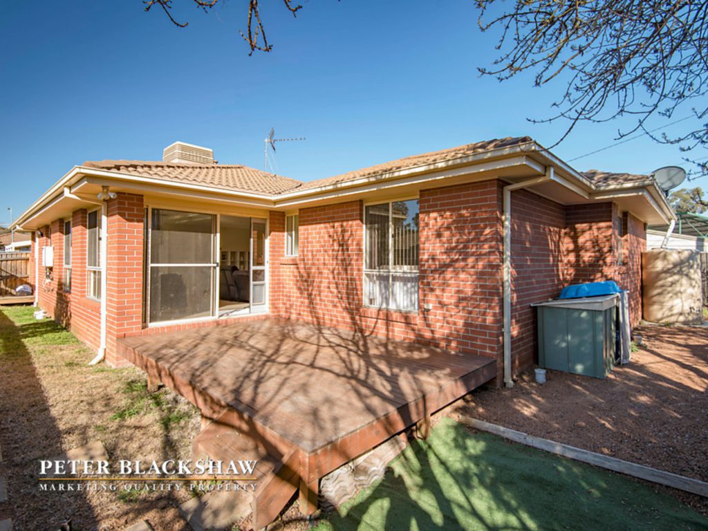 Nestled in a quiet cul- de- sac within a sought after pocket of Gilmore is this near new, single level separate title dual occupancy. This home is for people who appreciate warmth, flow, entertaining and modern lifestyle living. The spacious open plan living area connects superbly to the large modern kitchen with stone bench tops and quality appliances. The rear alfresco entertaining deck and paved area which overlooks the landscaped gardens is ideal for entertaining friends and family. Accommodation includes three bedrooms all with built in robes, the master with walk in robe and modern ensuite. Other features include ducted gas heating, evaporative cooling, modern bathroom, quality appliances and large double garage with internal access. Easy-care landscaped gardens surround the home. Tastefully decorated throughout with modern fittings, fixtures and colours. Stroll to local shops and parkland and a short drive to Tuggeranong, Hume and Woden shopping centres. A unique offering ready to just move in and enjoy.