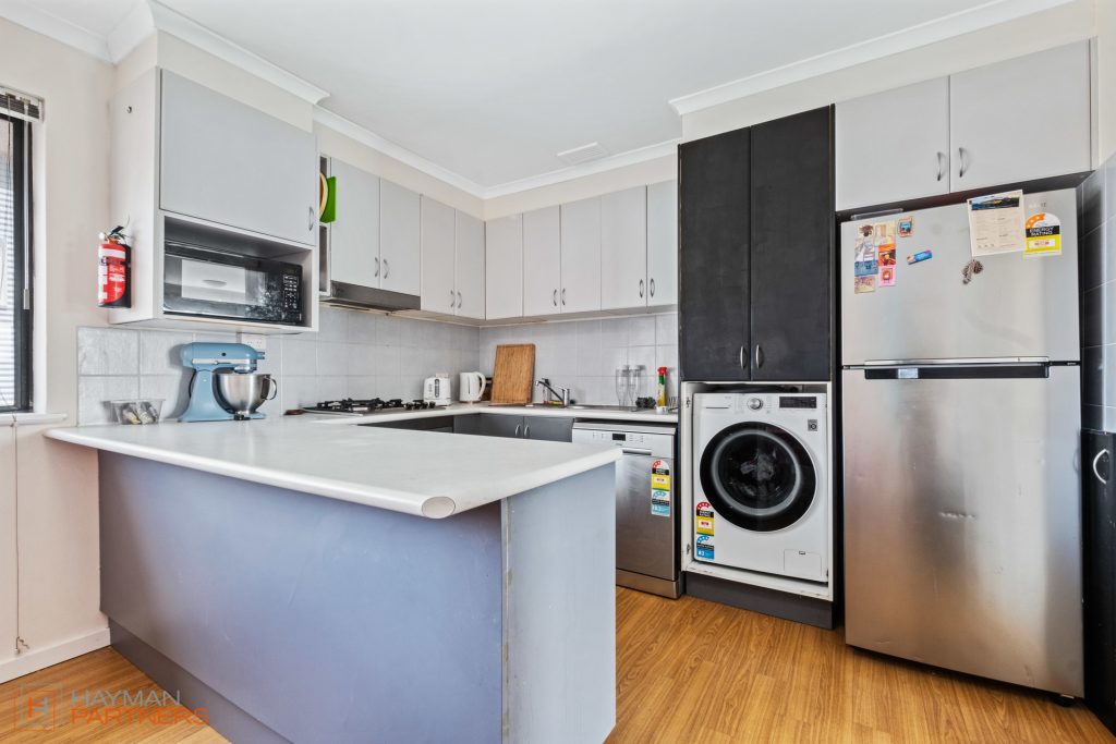 What sets this home apart is the light-filled ambience and functional floor plan. The modern kitchen boasts stone benchtops, an island bench, bespoke joinery and quality appliances. The bathroom is tidy and well-presented, offering a shower and bath combination, with toilet and vanity. Additional features include a European laundry, and reverse cycle air-conditioner for year round comfort.