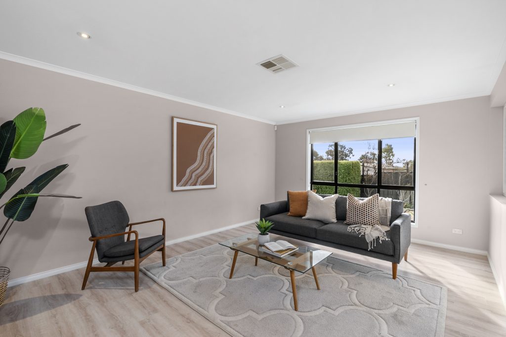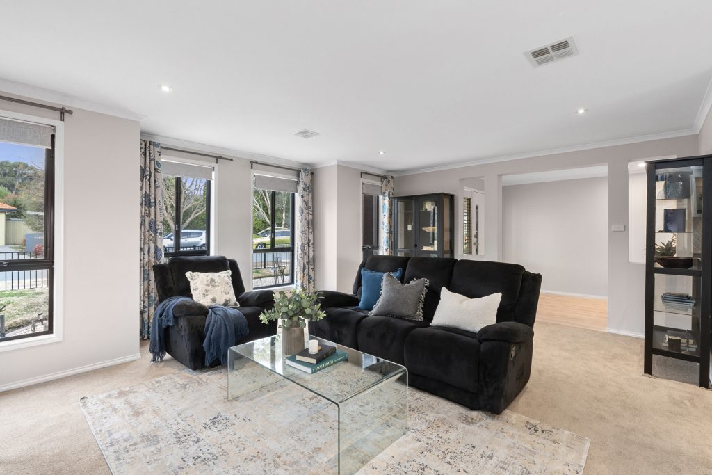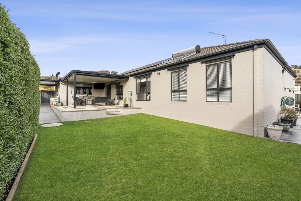 Spacious, stylish and featuring a quality design, this superb residence is presented in great condition and provides a contemporary family lifestyle that is supremely easy-to-maintain. It features a light and airy floorplan that offers effortless in/outdoor entertaining with crisp open interiors, generous proportions and a private grassed garden at the rear. This pristine home ticks all the boxes for immediate enjoyment with its large size, great versatility and excellent location that’s close to neighbourhood parks, Charles Conder Primary School and Lanyon Marketplace.