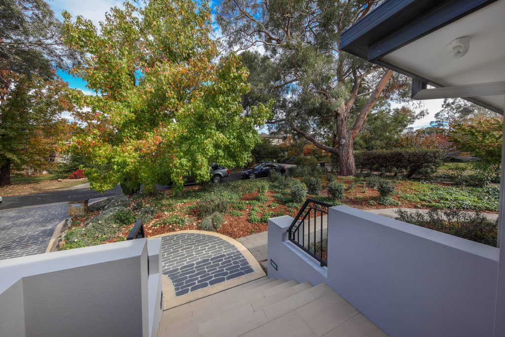 Surrounded by private mature landscaped gardens, the large covered porch makes an impressive entry to the property. Boasting warmth and flow throughout with the use of clean lines, open spaces and extensive use of full length windows and sliding doors. The flexible floor plan features a number of open living spaces which include the formal lounge and dining at the front of the home, spacious family and meals area. The light filled modern gourmet kitchen has soft close drawers, stone benchtops, dishwasher, pull-out double bins and a Kleenmaid fan-forced Pyrolytic oven and induction cooktop. Accommodation includes four/five bedrooms all with built-in wardrobes, plus an oversize study supported by two beautifully renovated bathrooms which include quality custom vanities, glass feature tiles, Rogerseller tapware and in-floor heating. A rumpus/games room downstairs is perfect for the large family, with a bedroom and bathroom adjacent, this area could easy double as a home office, granny flat or parents retreat. Other features include a large outdoor entertaining area with custom iron railings and outdoor speaker system, enclosed rear garden with North facing established trees ideal for pets and children to run around. Situated in the friendly residential suburb of Curtin – with sought after exclusive area primary schools, local shopping centre designed for coffee catch-ups, 24 hour gym, medical facilities and much more. Express buses to the city, Parliamentary triangle, Inner South High Schools & Colleges. An outstanding and rare opportunity not to be missed. Features Include: Only 2 owners