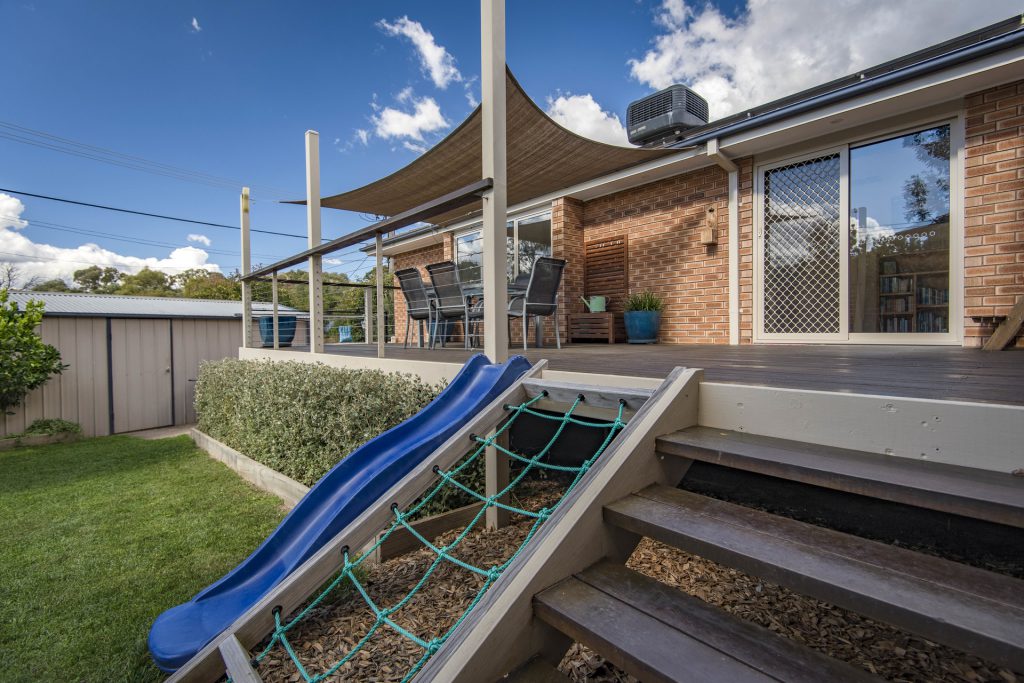 – Spacious backyard with chicken shed, raised veggie garden and low maintenance native garden