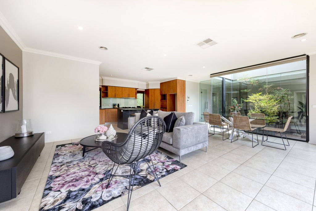 Nestled in a superb position within an exclusive and tightly held pocket of Curtin, this immaculate split level open plan designed residence boasts warmth, style and an abundance of natural light throughout with an extensive use of high ceilings, full length windows and doors.