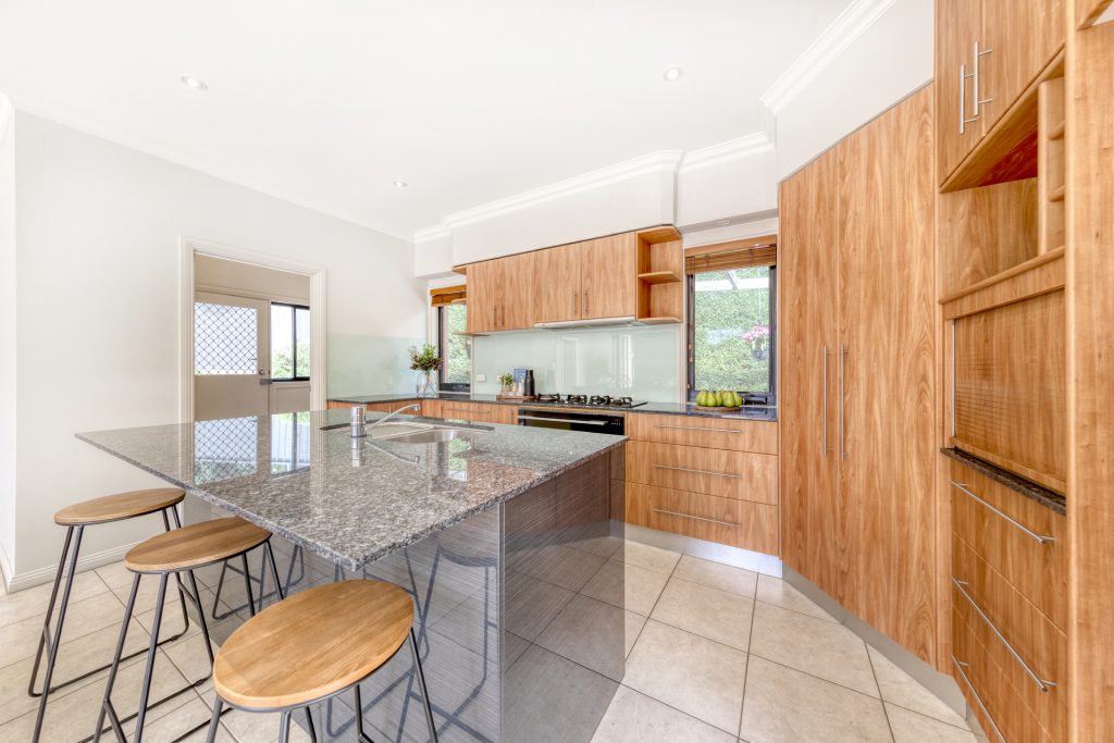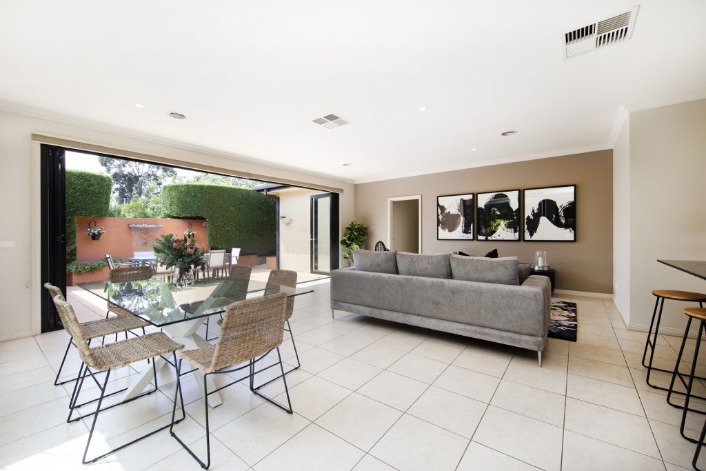 The formal areas include a North facing lounge and a beautiful dining area with feature glass atrium. The home offers a spacious floor plan with a sun-drenched family living area that connects beautifully with the functional granite kitchen and adjoining meals area. The living areas extends through bi-fold doors to an extensive paved outdoor area with water feature and private gardens that is ideal for outdoor entertaining.