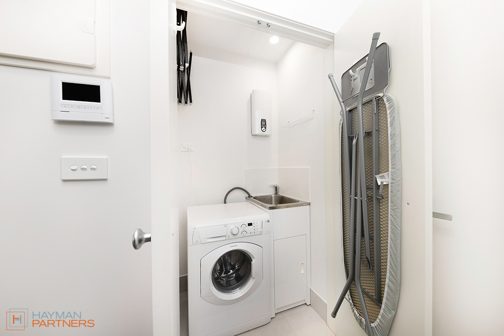 This stylish single bedroom unit offers a contemporary lifestyle with thoughtful design and quality finishes. The open plan kitchen / dining / living area creates a spacious feel, the kitchen featuring sleek detailing, quality AEG appliances, for a premium cooking and dining experience.