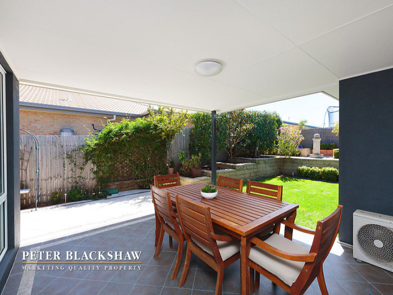 The home offers a unique floor plan with segregated formal lounge and dining areas, that open to an elevated balcony which boasts stunning views of the Brindabella Mountain Range. The large modern kitchen with an island bench connects seamlessly to the family / meals area. Flowing out through a glass French style door is a large paved entertaining area with covered alfresco, ideal for those who love entertaining outdoors, all year round. Accommodation includes four generous bedrooms, master with a walk in robe and ensuite. Other features include a large double garage under, ducted reverse cycle heating / cooling, in-slab heating, ducted vaccum, rainwater tank and quality fixtures and fittings. Easy care landscaped gardens surround the paved outdoor entertaining area. A fantastic opportunity to secure an immaculate modern home ready for you to move straight in and enjoy.