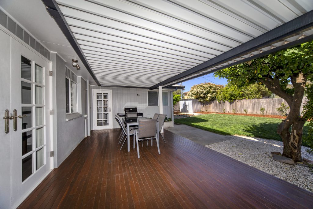 Large outdoor deck with covered pergola