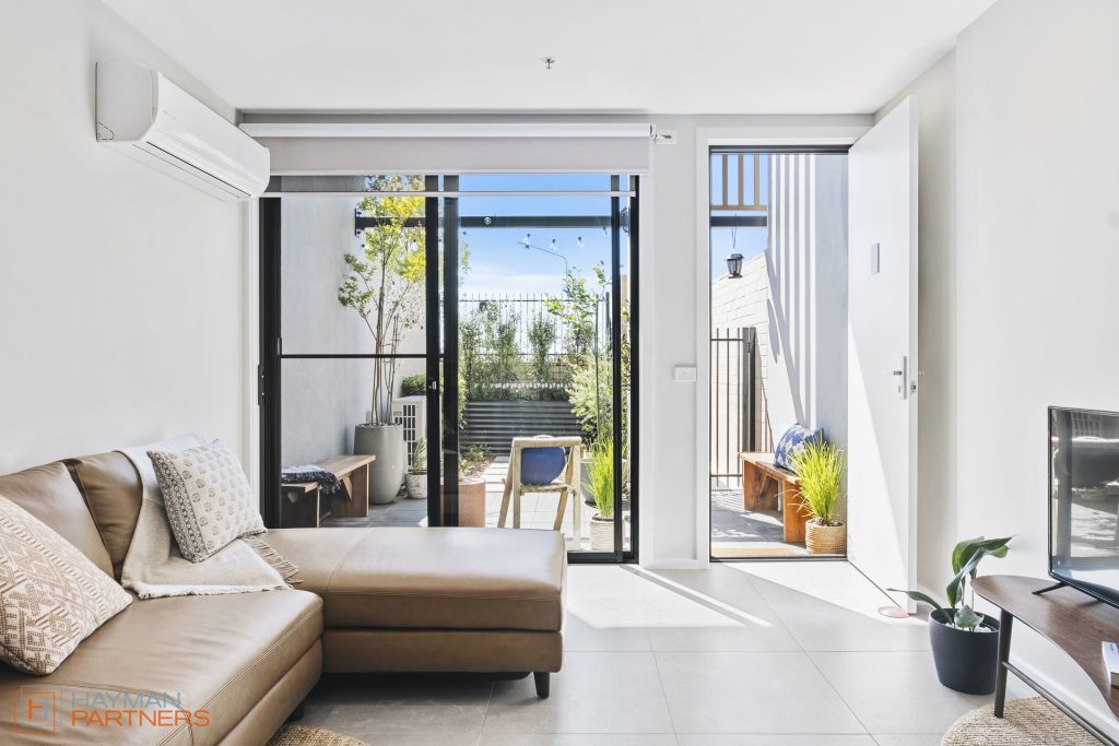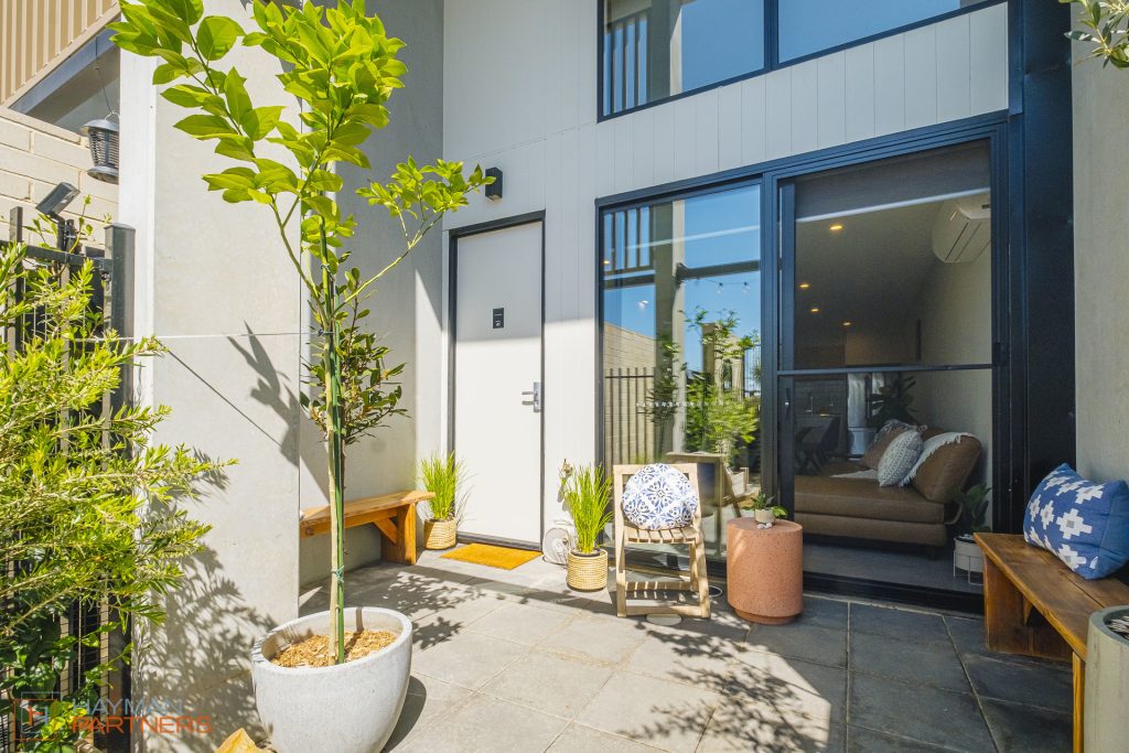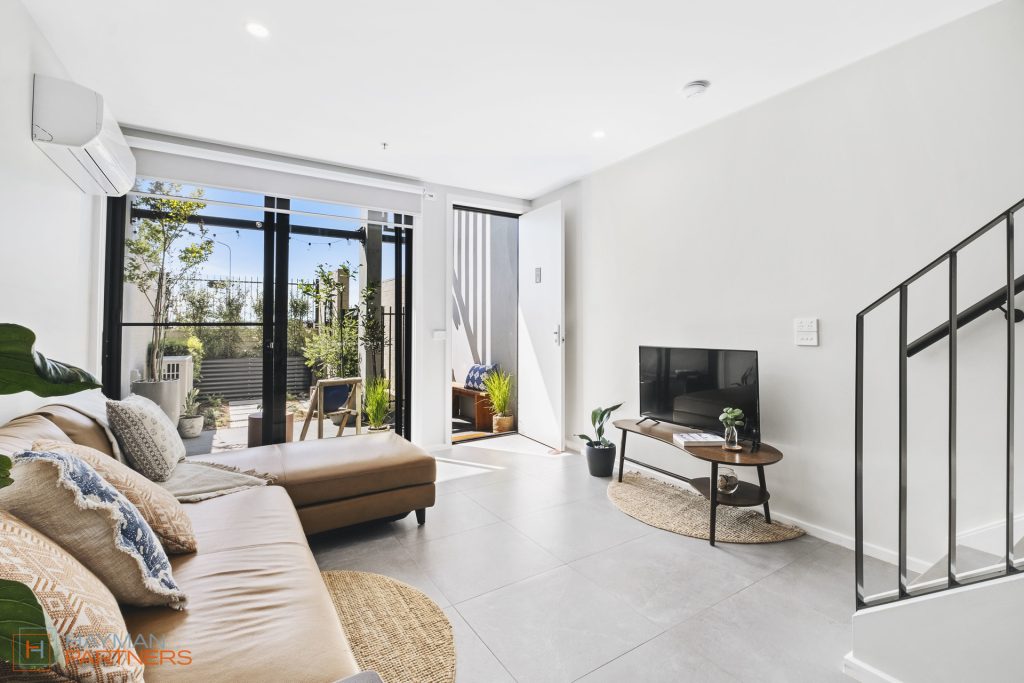 Welcome to this stunning two-storey townhouse, a perfect blend of modern design and comfort. Be enticed from the moment of entry, with the private, north-facing garden courtyard, complete with raised garden bed, bathed in natural sunlight and a wonderful spot for relaxation or entertaining. Inside the home, a stylish open plan kitchen / dining / living area greets you, a comfortable air-conditioned retreat with tiled flooring and floor to ceiling windows that adds an additional touch of sophistication. The well-equipped kitchen features sleek 20mm reconstituted stone benchtops, induction cooktop and ample storage options.