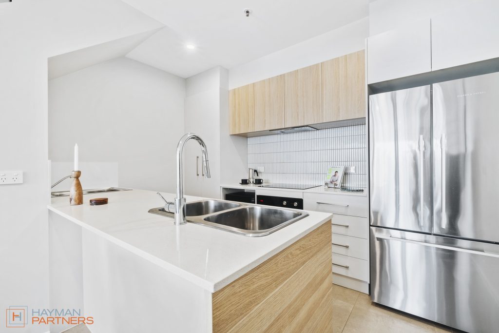 – Well-equipped kitchen with 20mm reconstituted stone benchtops, induction cooktop