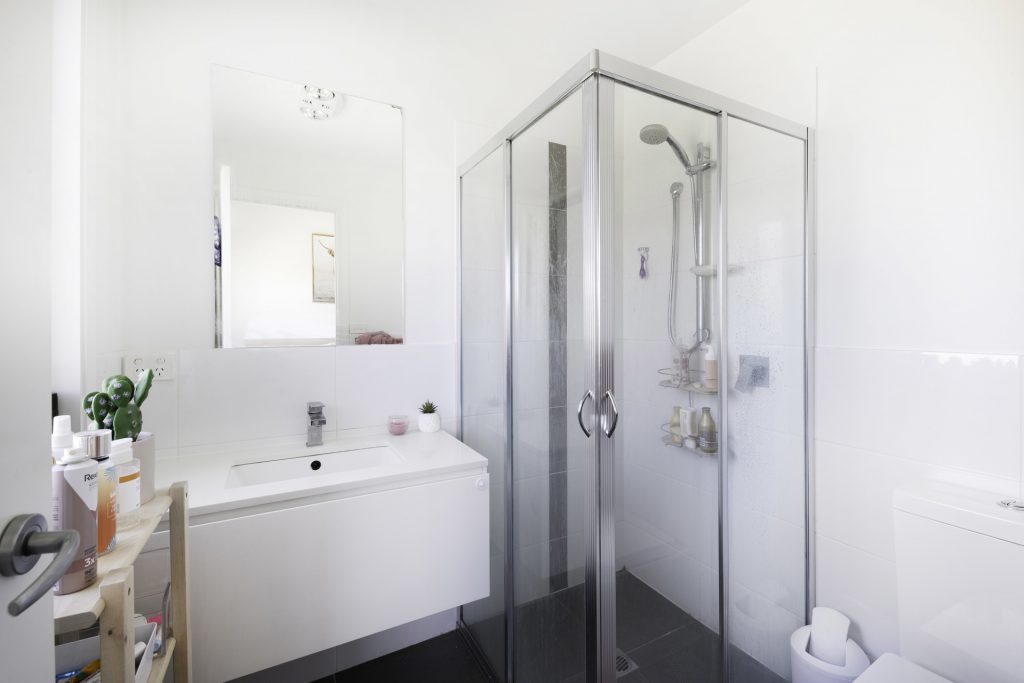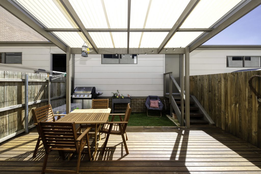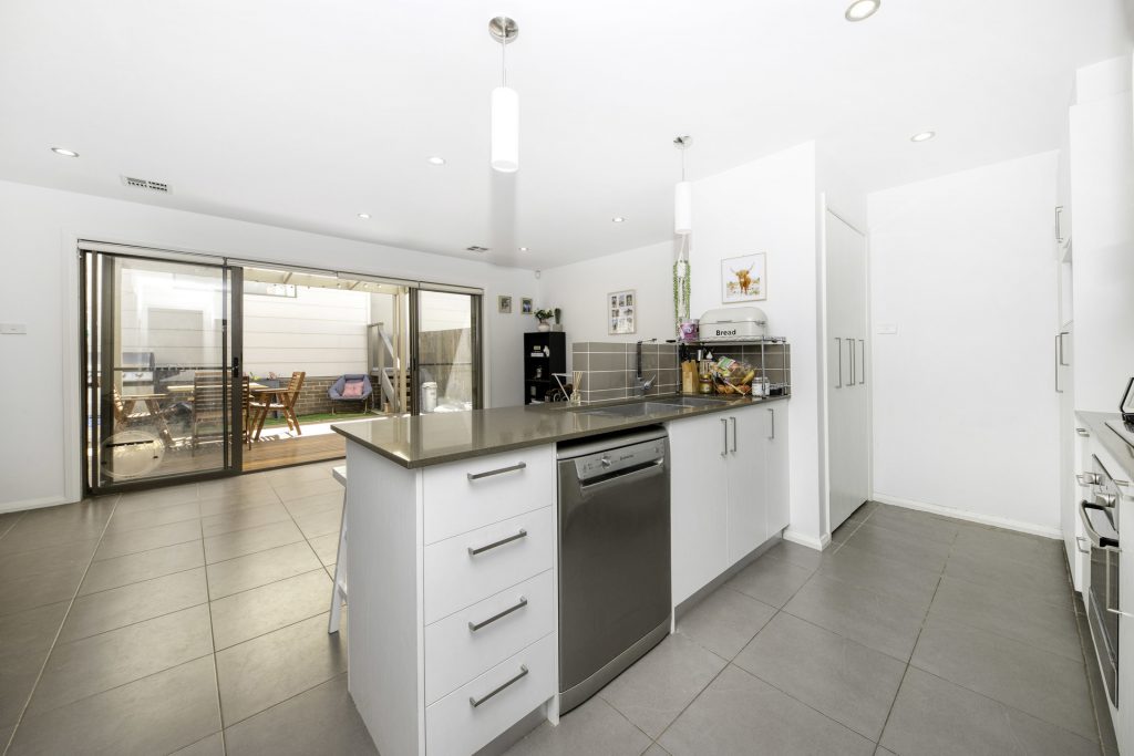 There is also the bonus of a separate powder room downstairs. With an easy flowing floor plan the home has loads of appeal. Functional well-designed kitchen with quality appliances. Glass sliding door opens to the outdoor deck which makes entertaining a breeze. With minimum care courtyard style garden, this home makes living easy.
