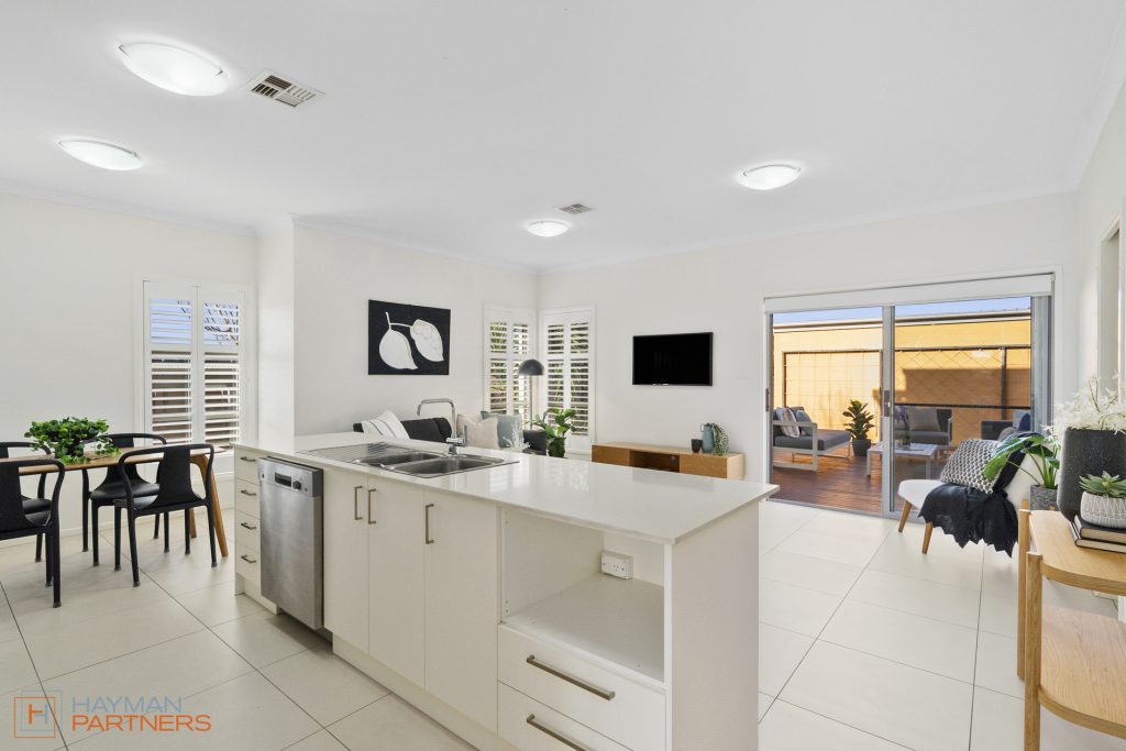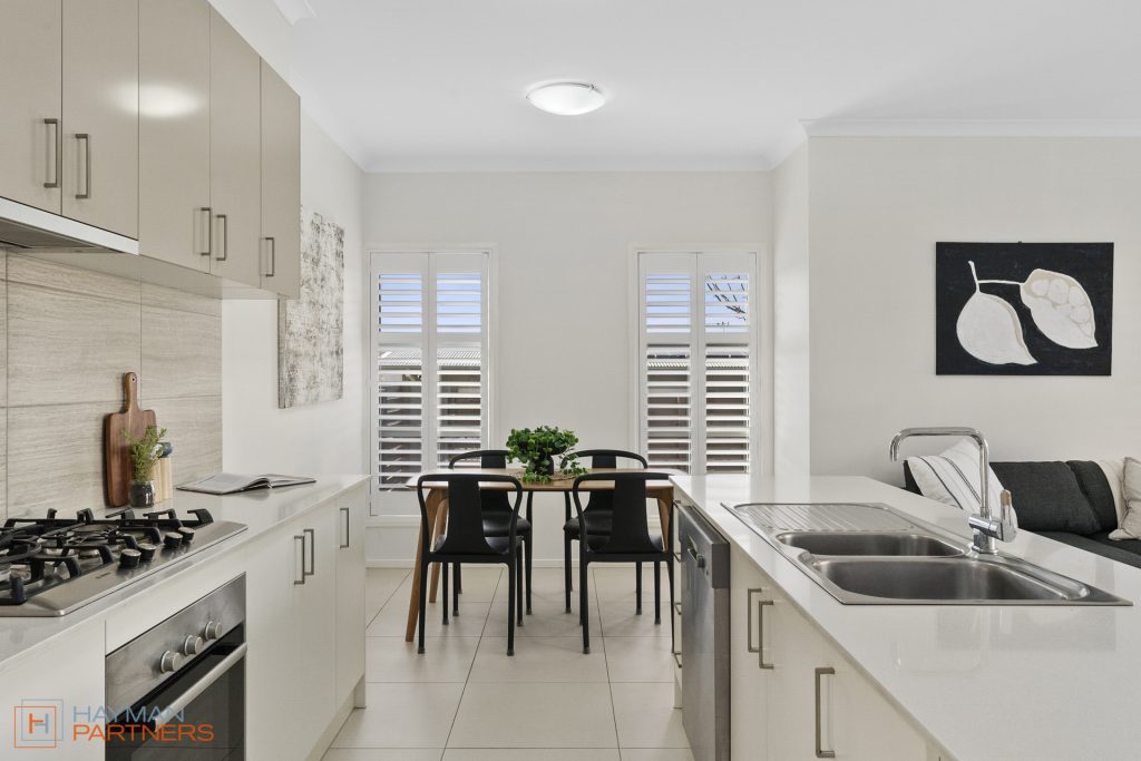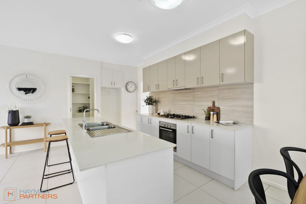 • Modern, gallery-style kitchen with oversized gas cooktop & stone benchtops