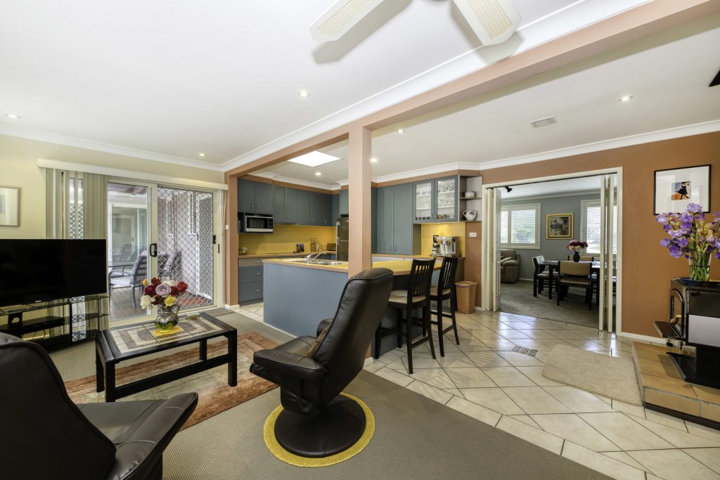 The open plan kitchen connects seamlessly to the sun drenched sitting / meals areas which transition through to the covered rear outdoor alfresco area overlooking the easy care landscaped gardens.