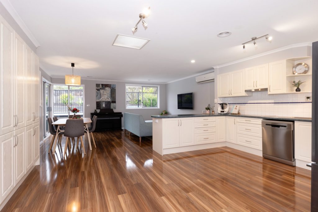 Modern kitchen with large amounts of bench space