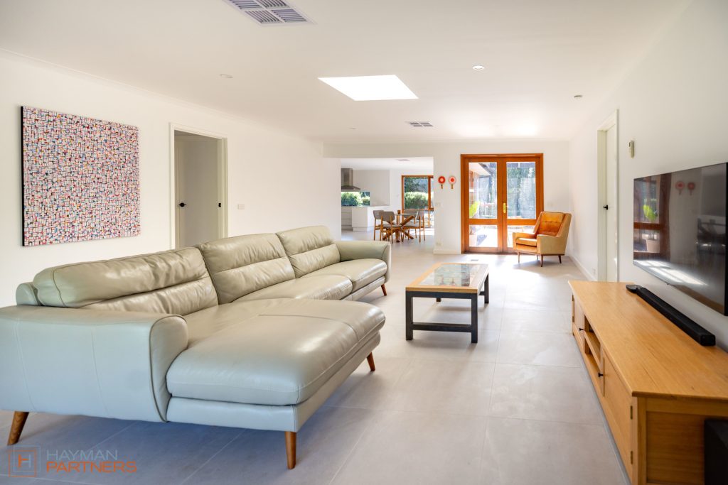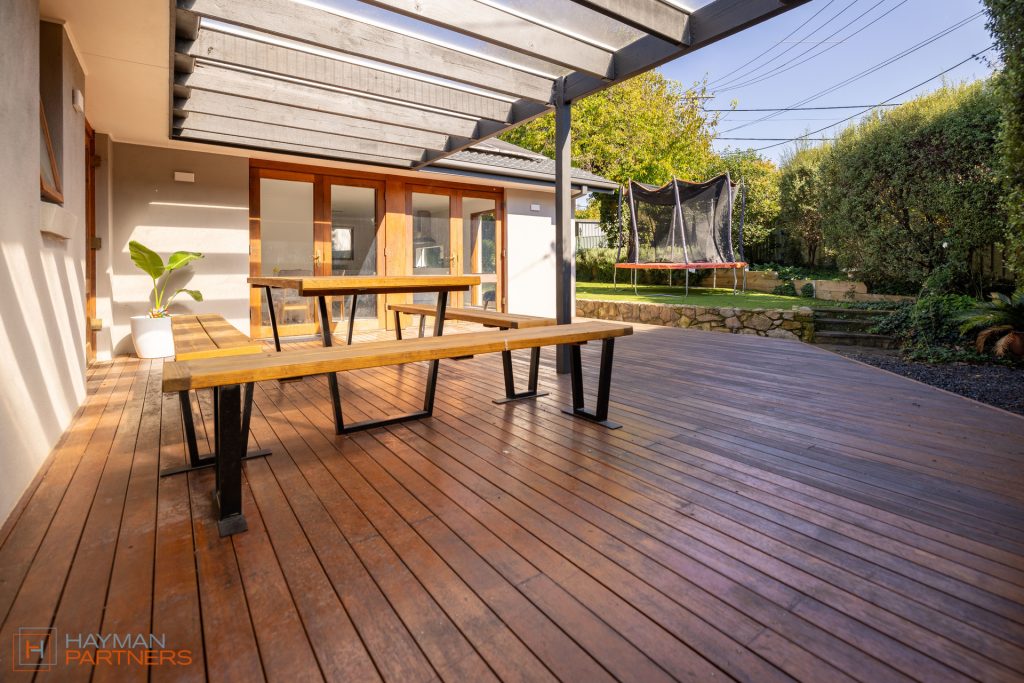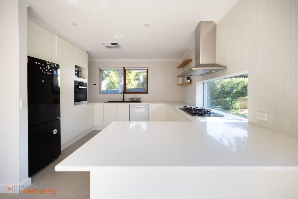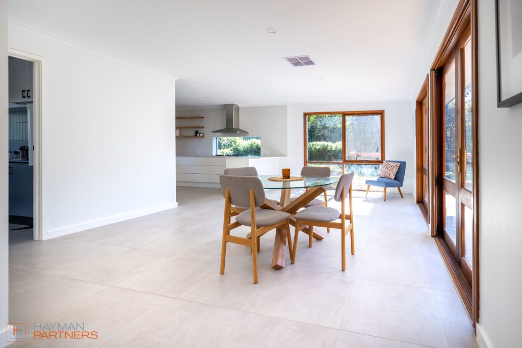 The Canberra Redbrick pathway leading to the entry and original textured glass front door add charm to the front façade and contrasts the modern renovations found inside. The open plan living areas provide a beautiful sense of space. Stretching from the French doors that open to the front verandah, through the heart of the home and spilling out to the rear entertaining deck, creating a superb balance between indoor and outdoor living.