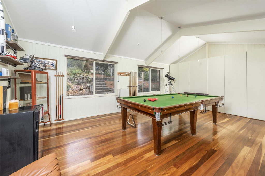 Rumpus room with significant storage & bi-fold doors with Centor fly screens. Full size billiard table can be included at buyer election.