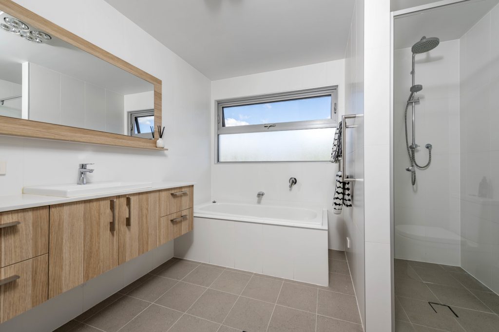 – Bathrooms feature full tiling, IXL tastic heat lamps and heated towel rails