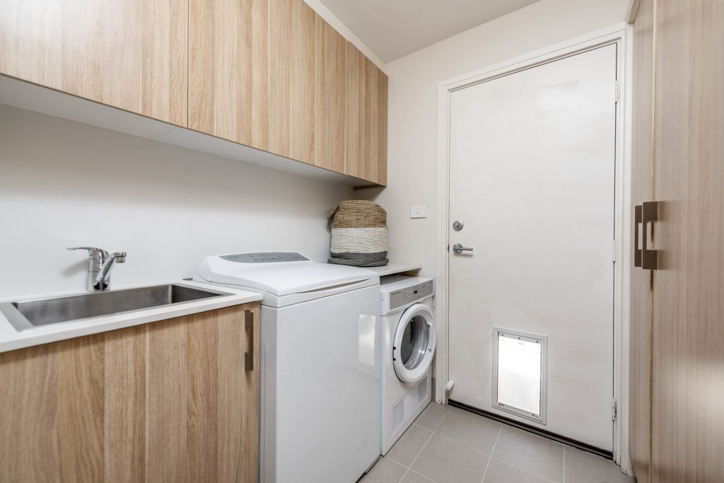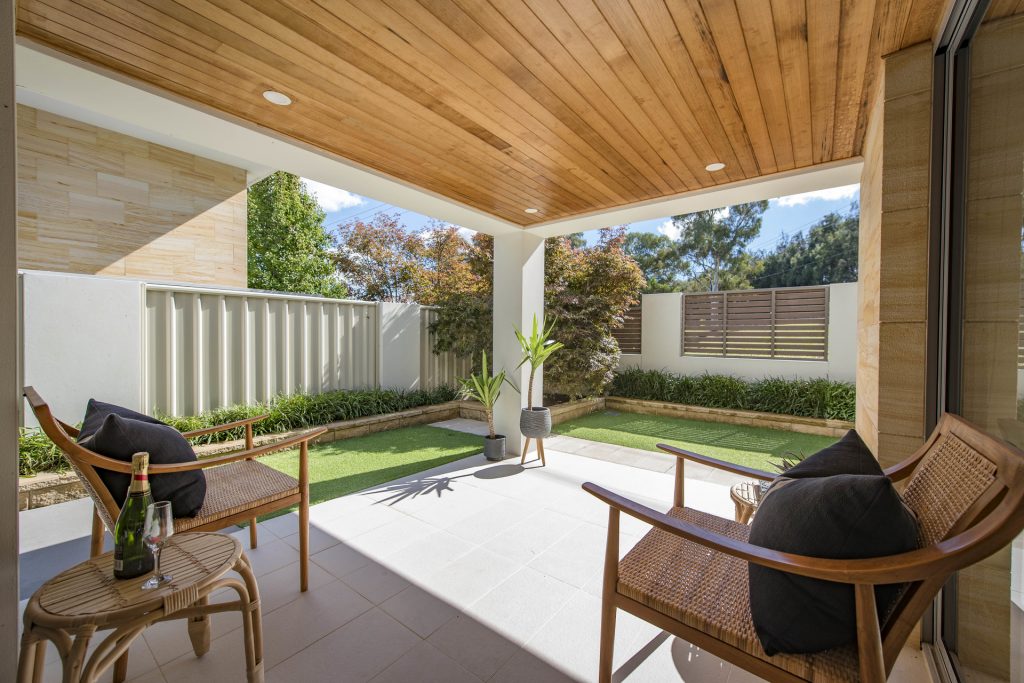 – Low maintenance and private yard with covered alfresco, featuring timber ceiling, downlights with dimmer and power