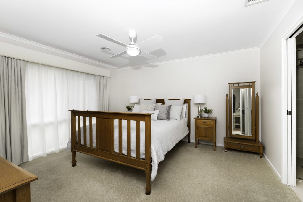 – LUCCI LED light remote controlled ceiling fan to master bedroom