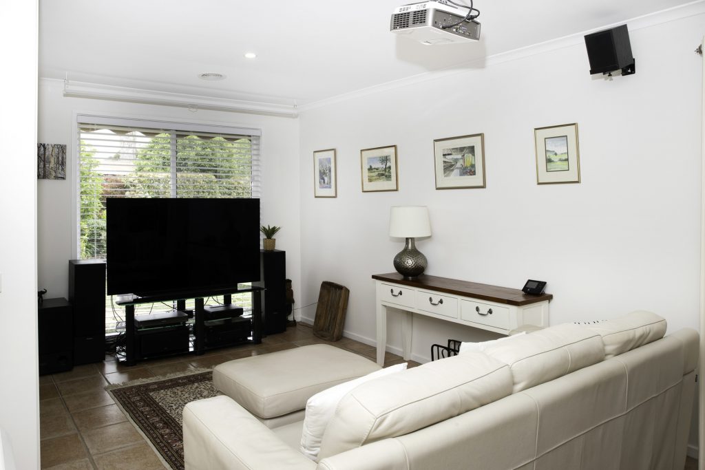 – Ceiling mounted HD Digital Projector with pull down matt white screen