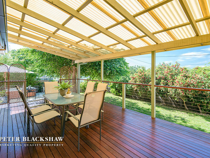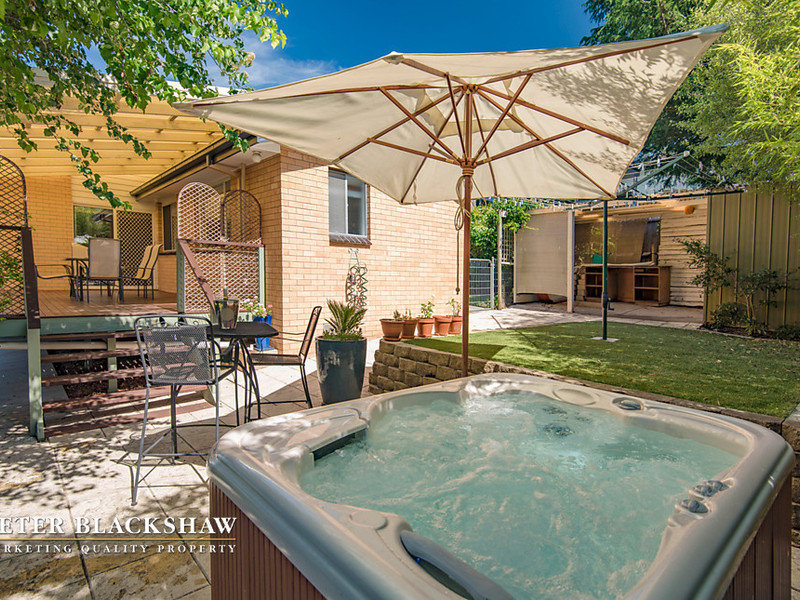 Positioned in a tightly held pocket of Lyons with sweeping views towards the Brindabella Ranges and ease of access to nature trails/ reserve land. Modernised, extended and updated throughout this 4 bedroom family residence boasts an abundance of living space, natural light and excellent segregation for the master suite. Formal and informal living area both open from the central kitchen which features granite bench-tops, Italian Ilve 900mm stainless steel gas/electric stove, integrated fridge/ freezer, glass splash back and custom joinery. A large covered rear deck flows from the family/dining room creating an ideal space for entertaining with Mt Taylor as a back drop. Freshly sanded and stained timber flooring, with new carpet to all bedrooms and painted throughout, there is nothing left to do but move on in, even comes complete with outdoor spa.