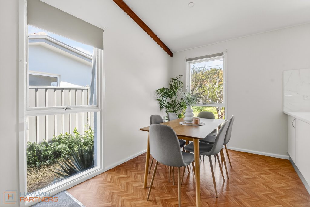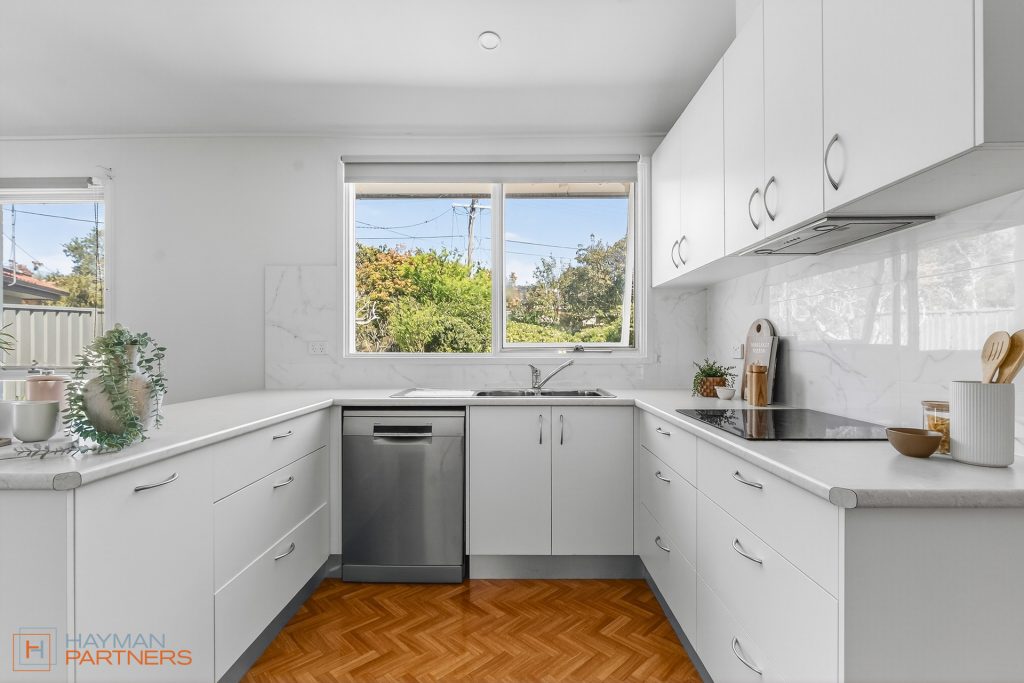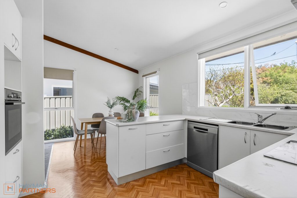 Inside, you’ll find a bright, open-plan kitchen and dining space with stylish parquetry flooring, complemented by a raked ceiling in the lounge room that enhances the sense of space and light. The updated kitchen features an induction cooktop, dishwasher, and great storage, while the renovated bathroom adds a touch of contemporary comfort. With built-in robes in all bedrooms, reverse cycle air conditioning, and established gardens, this is the perfect place to settle in and make your own.