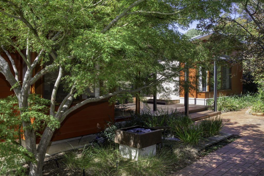 Water feature and garden attracts a variety of wildlife including Crimson Rosellas, Eastern Rosellas, King parrots, and Yellow-tailed Black Cockatoos
