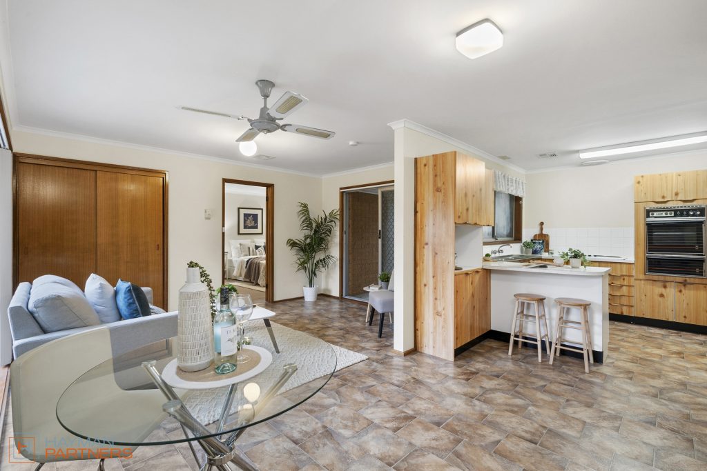 The large 155m2 floorplan features multiple living space including a large open plan lounge room to the front of the home. The separate dining room also has access to the covered alfresco area to the side of the home. The large kitchen, though original, is highly functional with an abundance of storage, bench space and electric appliances. The kitchen connects effortlessly to the family room and outdoor entertaining spaces.