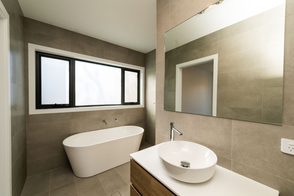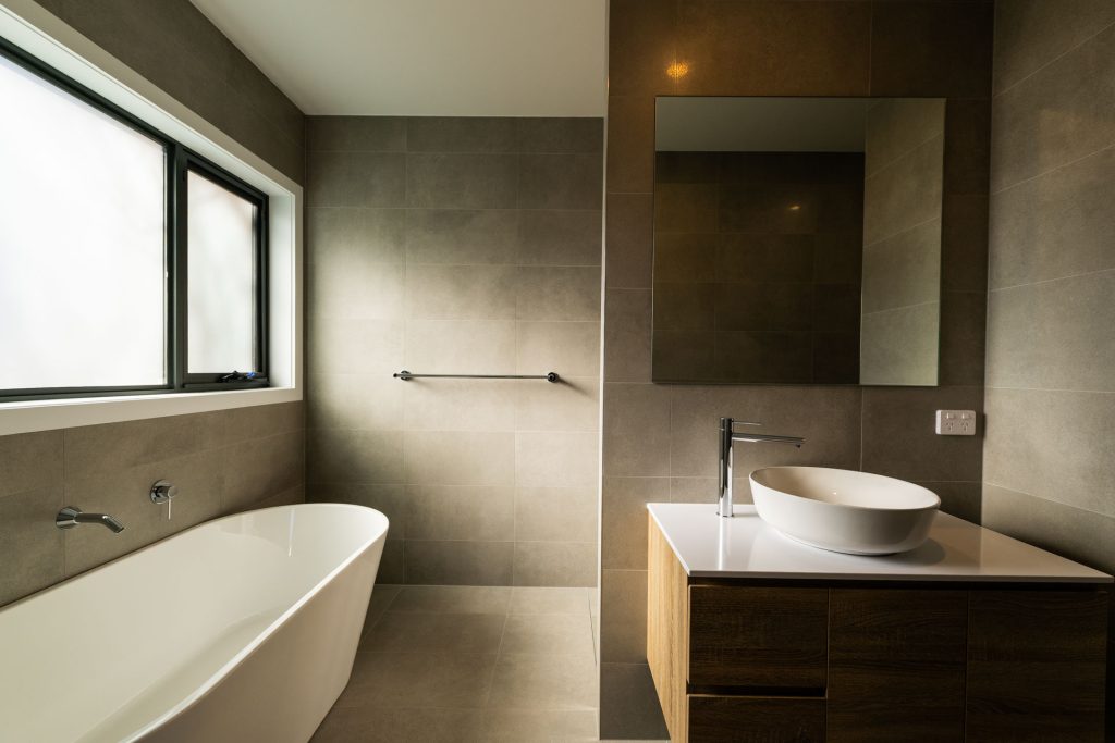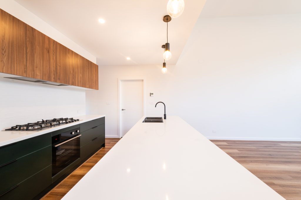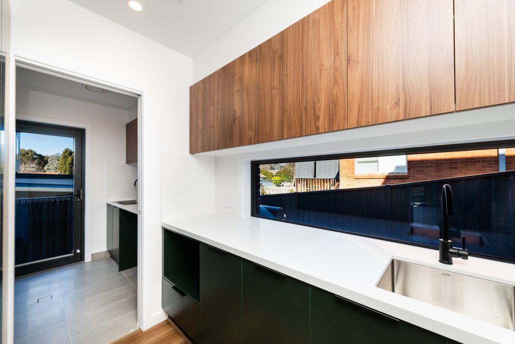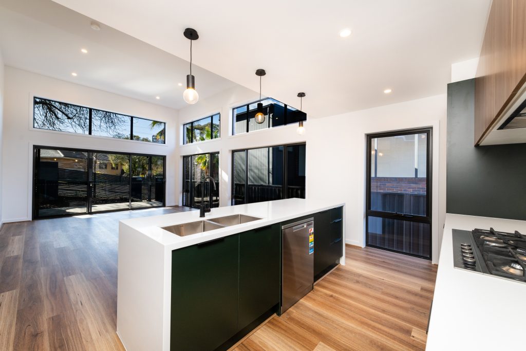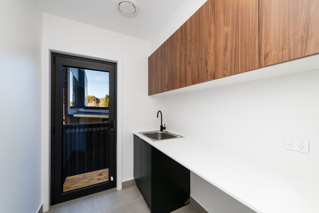 Each bathroom is a sanctuary of indulgence, featuring luxury finishes such as standalone bathtubs, floor to ceiling tiles and a dark palette. The convenience of a large laundry downstairs is an added feature, equipped with ample storage and an extra long benchtop expected in modern homes.