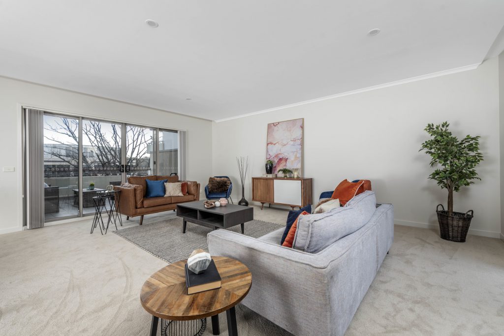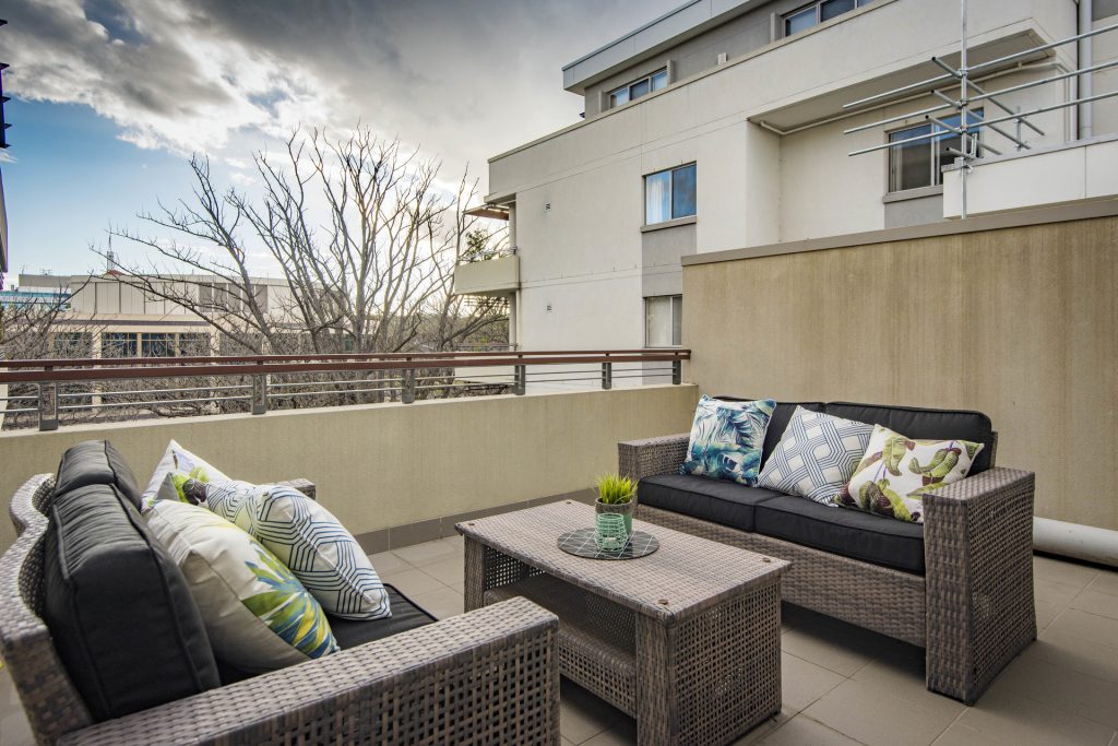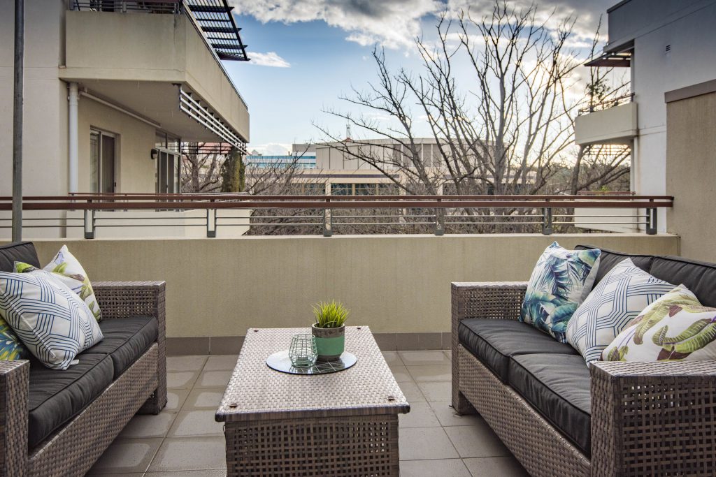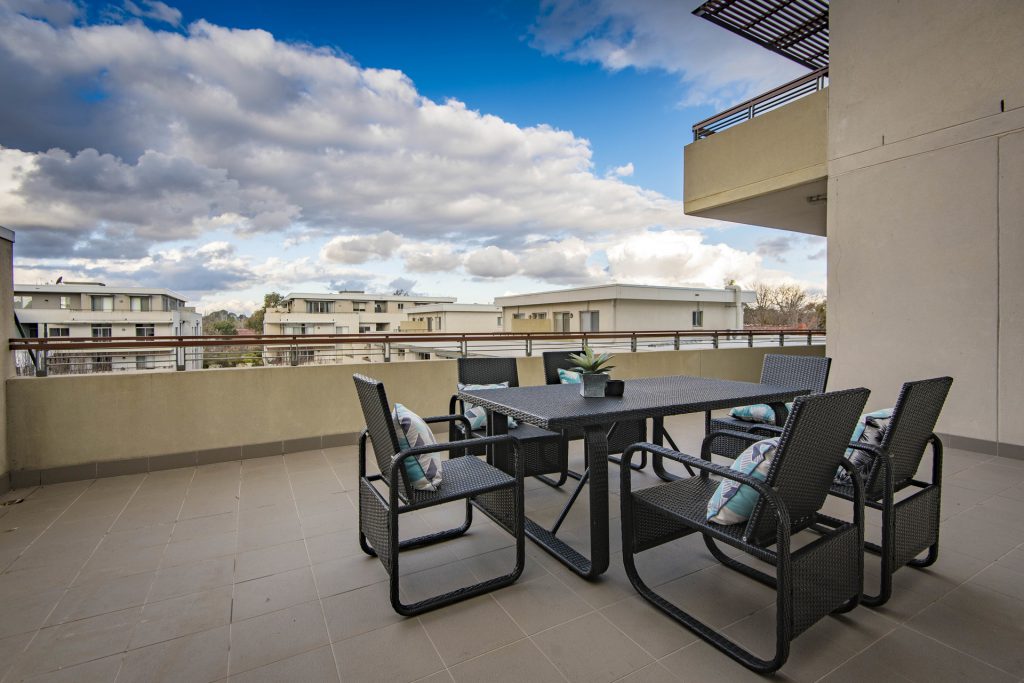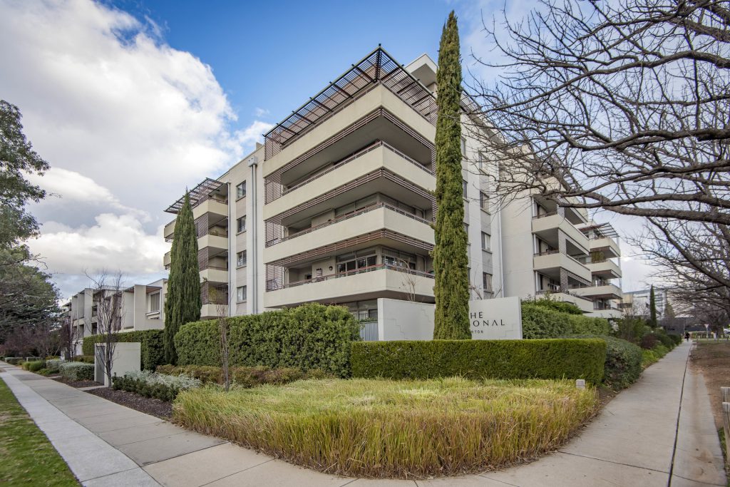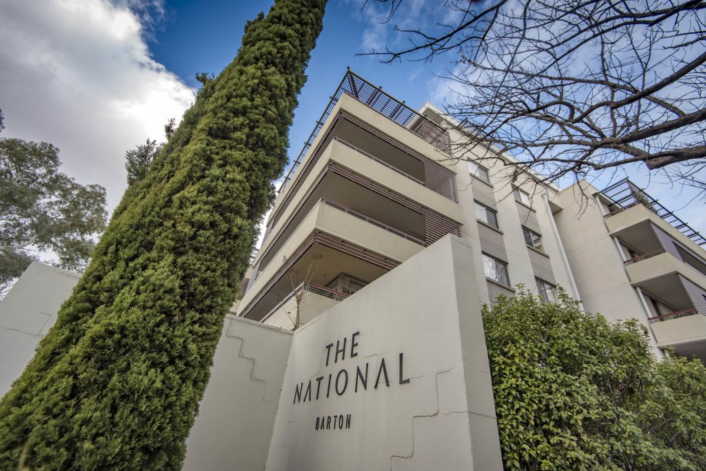 Perched atop the highly prized National in historic Barton. This sun-drenched, stylish sub-penthouse two bedroom plus study apartment combines both spacious indoor and outdoor living with the security and convenience of apartment living. Perfectly positioned with a northeast aspect and overlooking a leafy internal courtyard. Open plan design kitchen and living zones flow effortlessly to two separate sun-drenched terraces ideal for alfresco dining and sundowner cocktails. Two large bedrooms with an ensuite to the master. Functional well-appointed kitchen with quality appliances. Freshly painted interiors and new carpet it presents as new. Reverse cycle air-conditioning for year-round comfort.