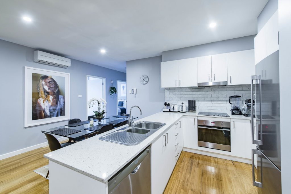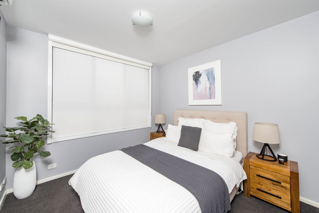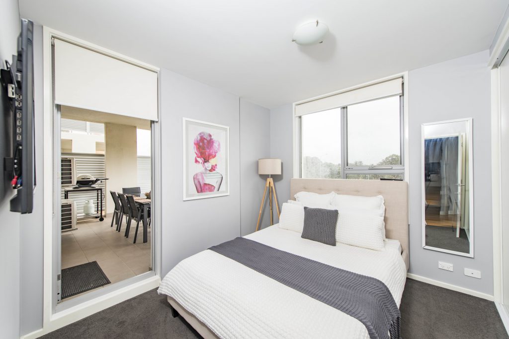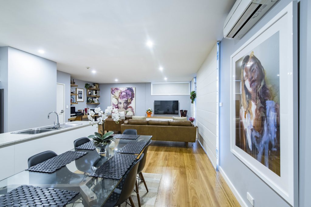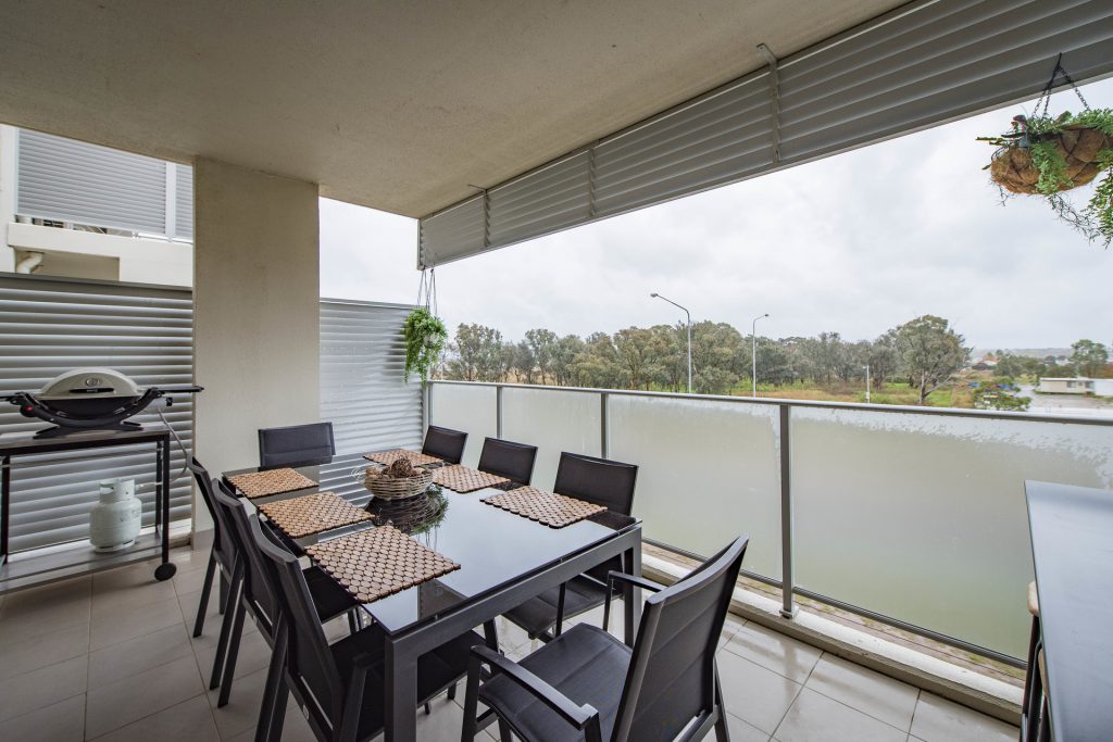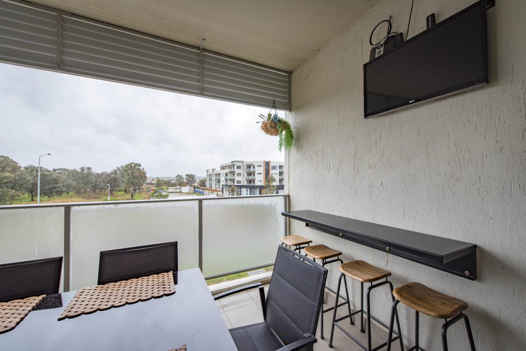 Offering one of the largest floor plans within the complex, an ideal apartment for those seeking a unique custom designed living space. From solid timber Blackbutt flooring, marble splashback tiles and custom joinery entertainment unit and study area with shelving. The area flow to a large covered outdoor balcony with LED lighting, wall mounted bench, power and wall mounted TV and tree top outlook. Oversized kitchen with stainless steel appliances, island bench and stone tops. Accommodation comprises two good sized rooms, with the master featuring walk in robe and ensuite. The second bedroom also has access to the balcony. Easy access to both Gungahlin Centre and Civic and future light rail link.Custom Joinery