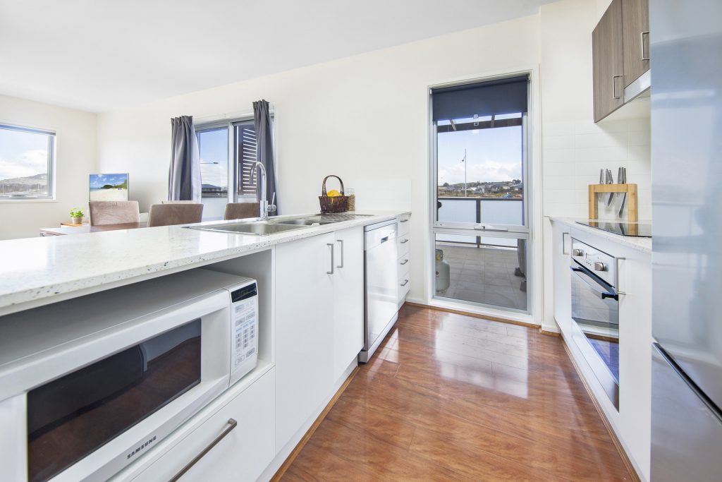 Kitchen with full length floor to ceiling window providing great natural light